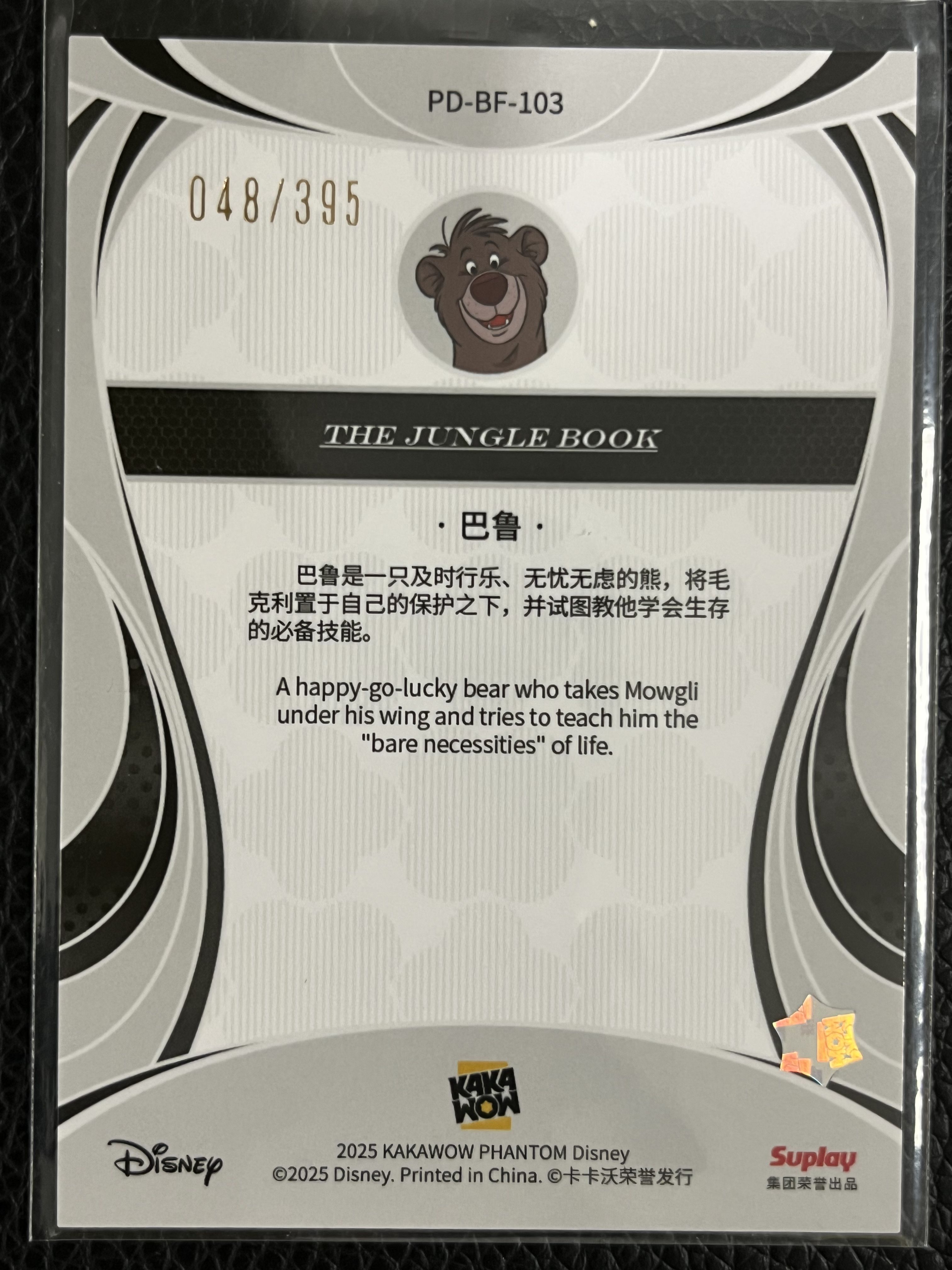 卡卡沃 2025 KAKAWOW PHANTOM 迪士尼系列收藏卡 基础卡-四叶草折 JKX白(19A)48/395编 卡号103 巴鲁 Baloo