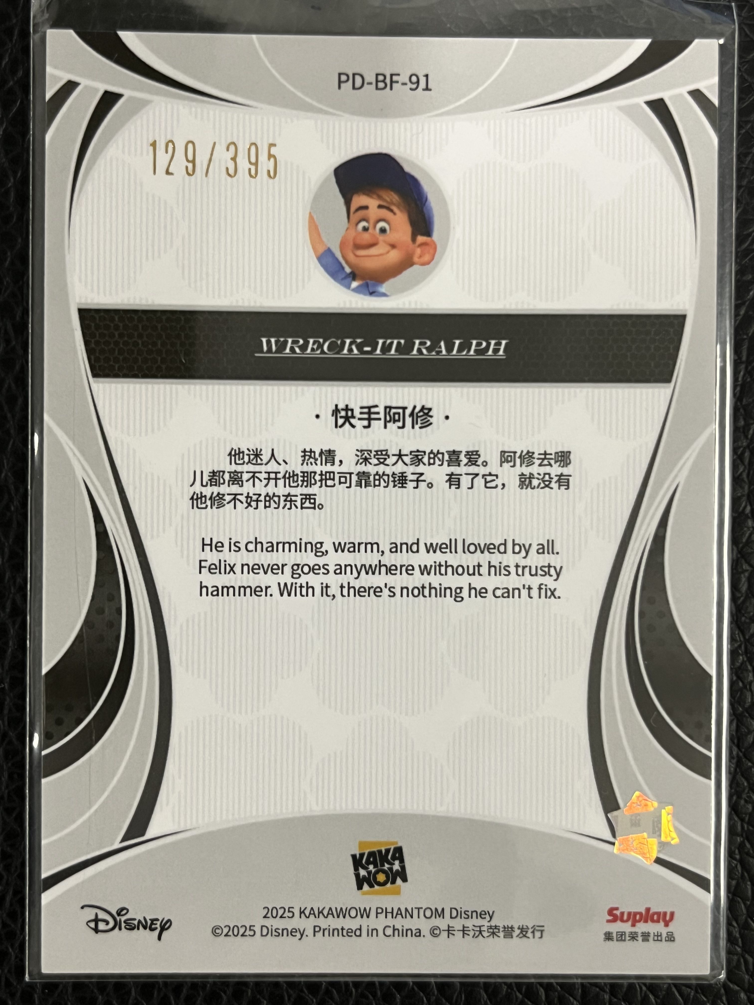 卡卡沃 2025 KAKAWOW PHANTOM 迪士尼系列收藏卡 基础卡-四叶草折 JKX白(19A)129/395编 卡号91 快手阿修 Fix-It Felix, Jr