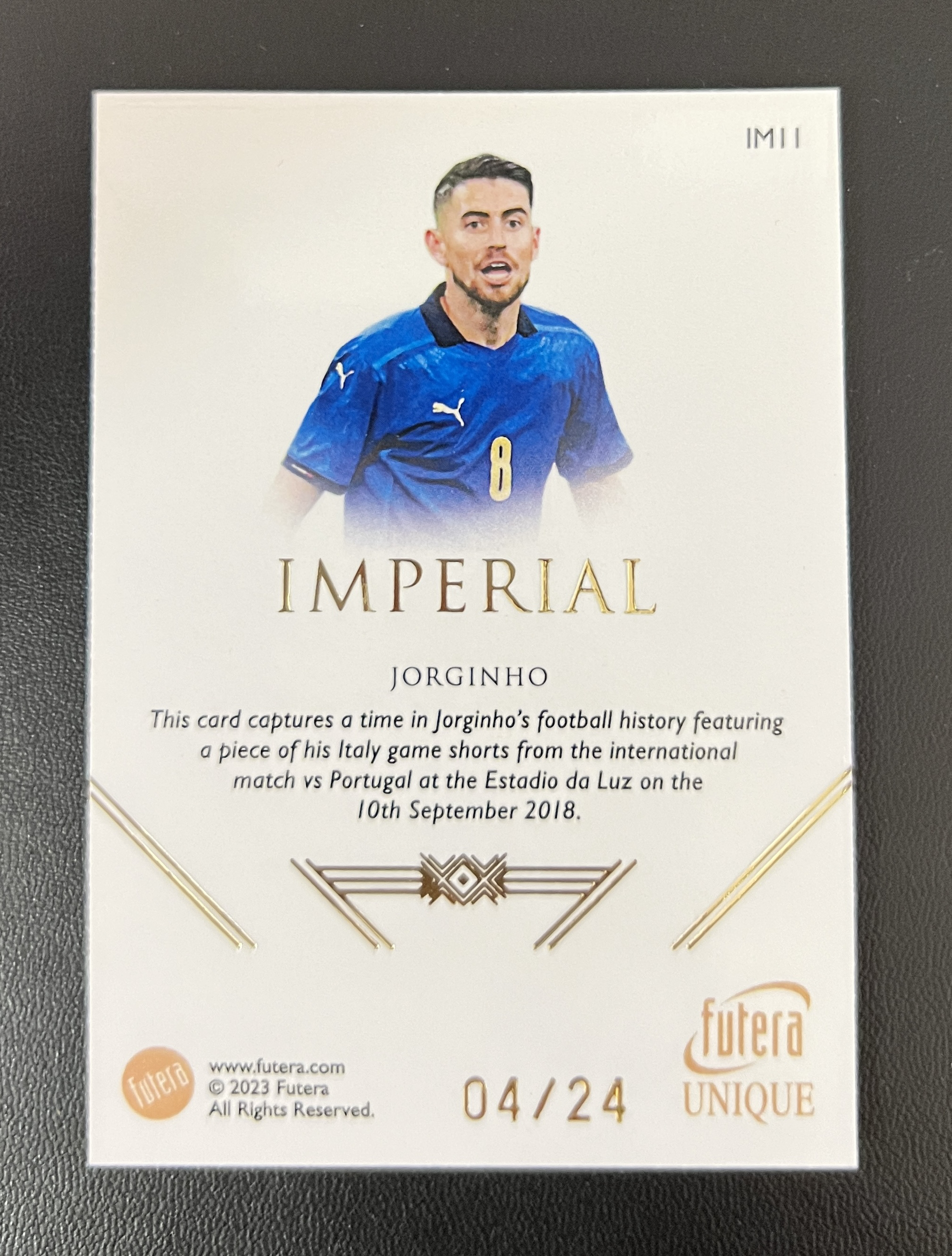 2023 Futera Futera Unique Jorginho 福特拉 意大利 若日尼奥 阿森纳 切尔西 Imperial 四窗 物料切割 GU落场球衣 04/24编 收藏必备