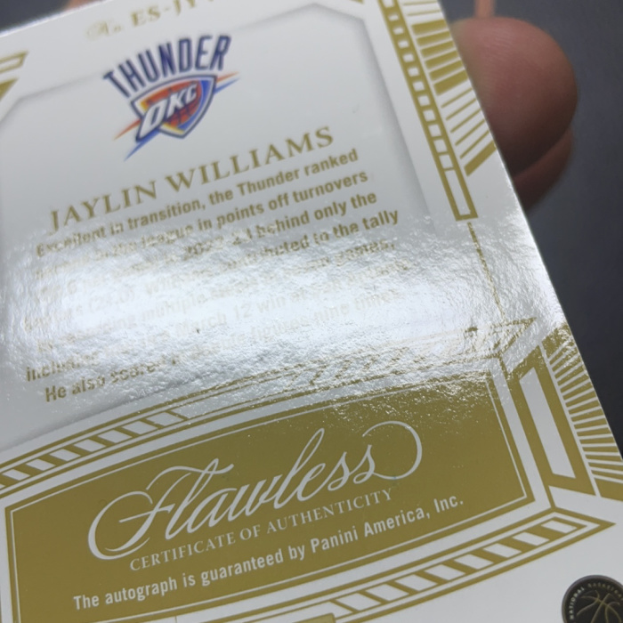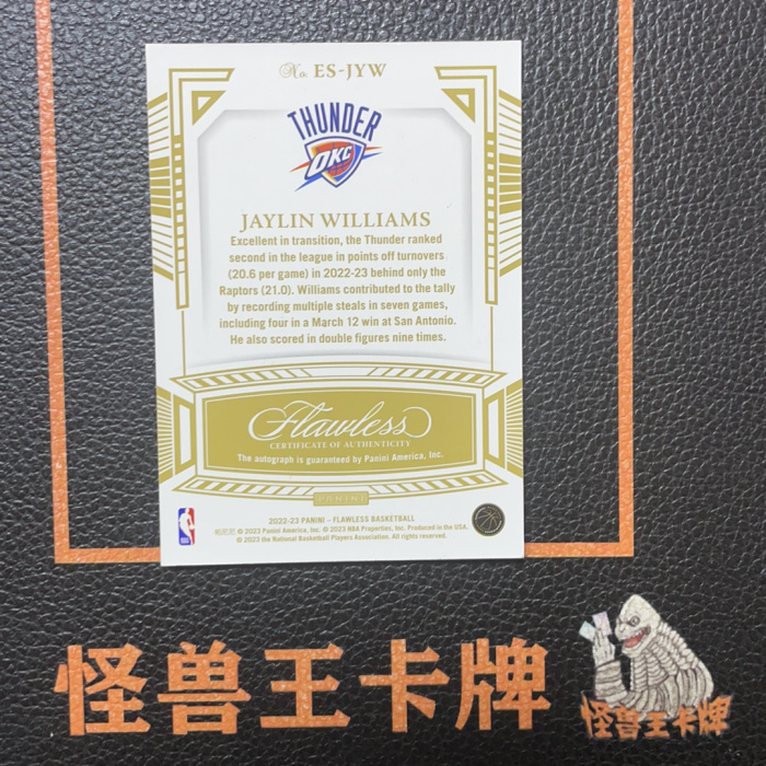 (怪兽拍卖) GSW-C27 2022-23 Flawless Jaylin Williams RC 手提 雷霆 杰林 威廉姆斯 菲律宾郑中基 新秀 签字 卡签 1/3编 首编 超低编 图3微瑕