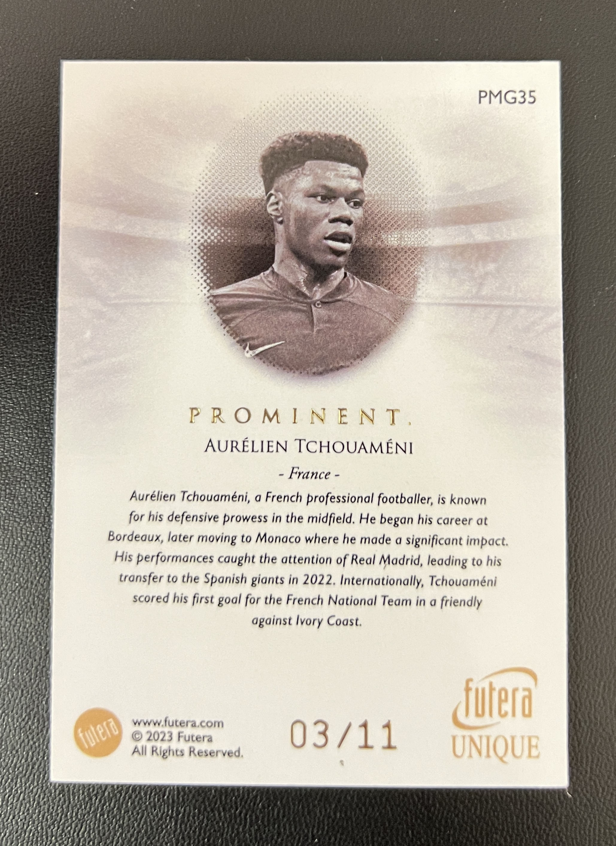 2023 Futera Futera Unique Aurélien Tchouameni 福特拉 法国 年轻中场 后腰 未来之星 琼阿梅尼 金框 03/11编 低编 实卡漂亮 收藏必备