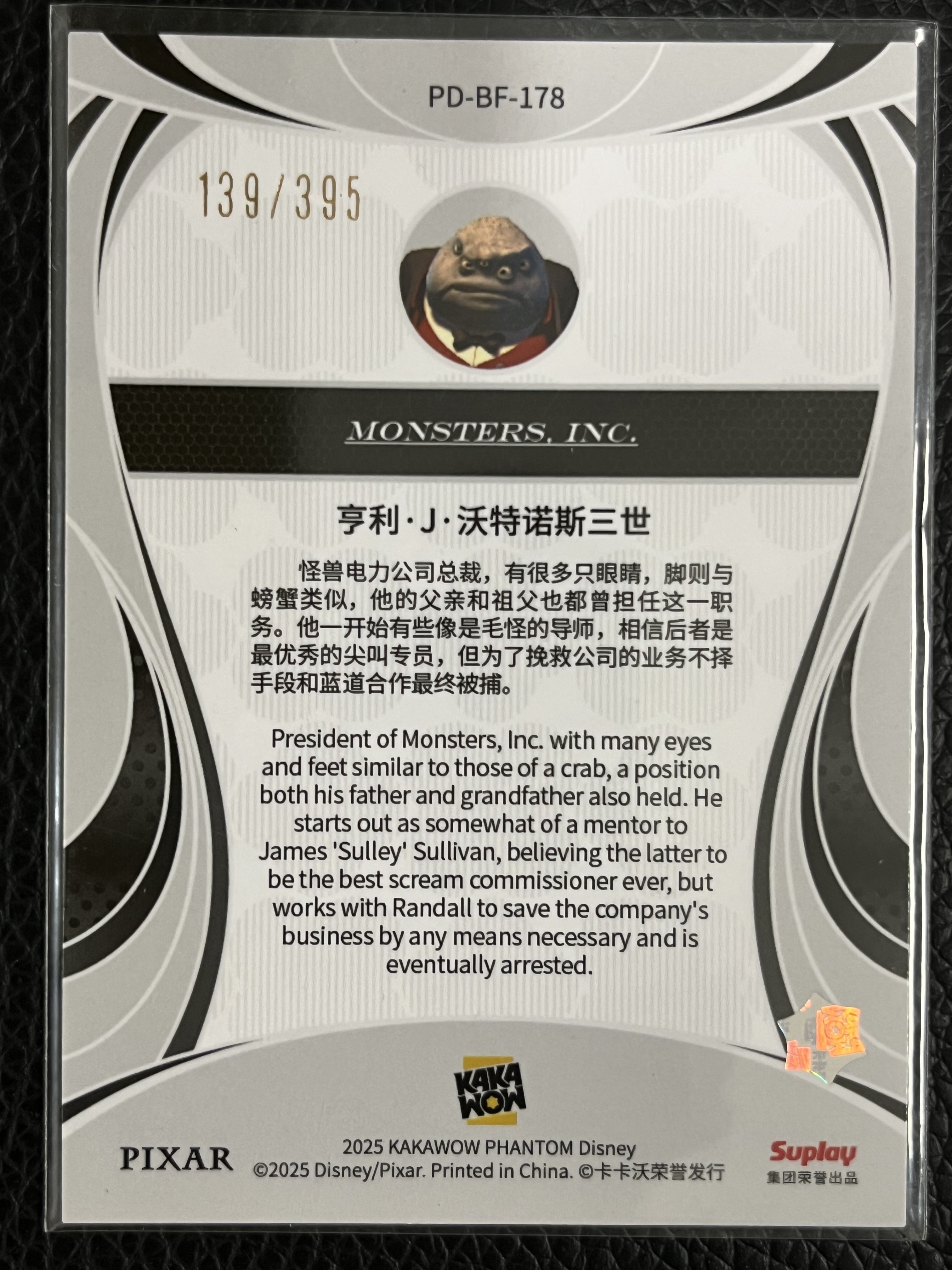卡卡沃 2025 KAKAWOW PHANTOM 迪士尼系列收藏卡 基础卡-四叶草折 JKX白(19A)139/395编 卡号178 亨利·J·沃特诺斯三世 Henry J. Waternoose I