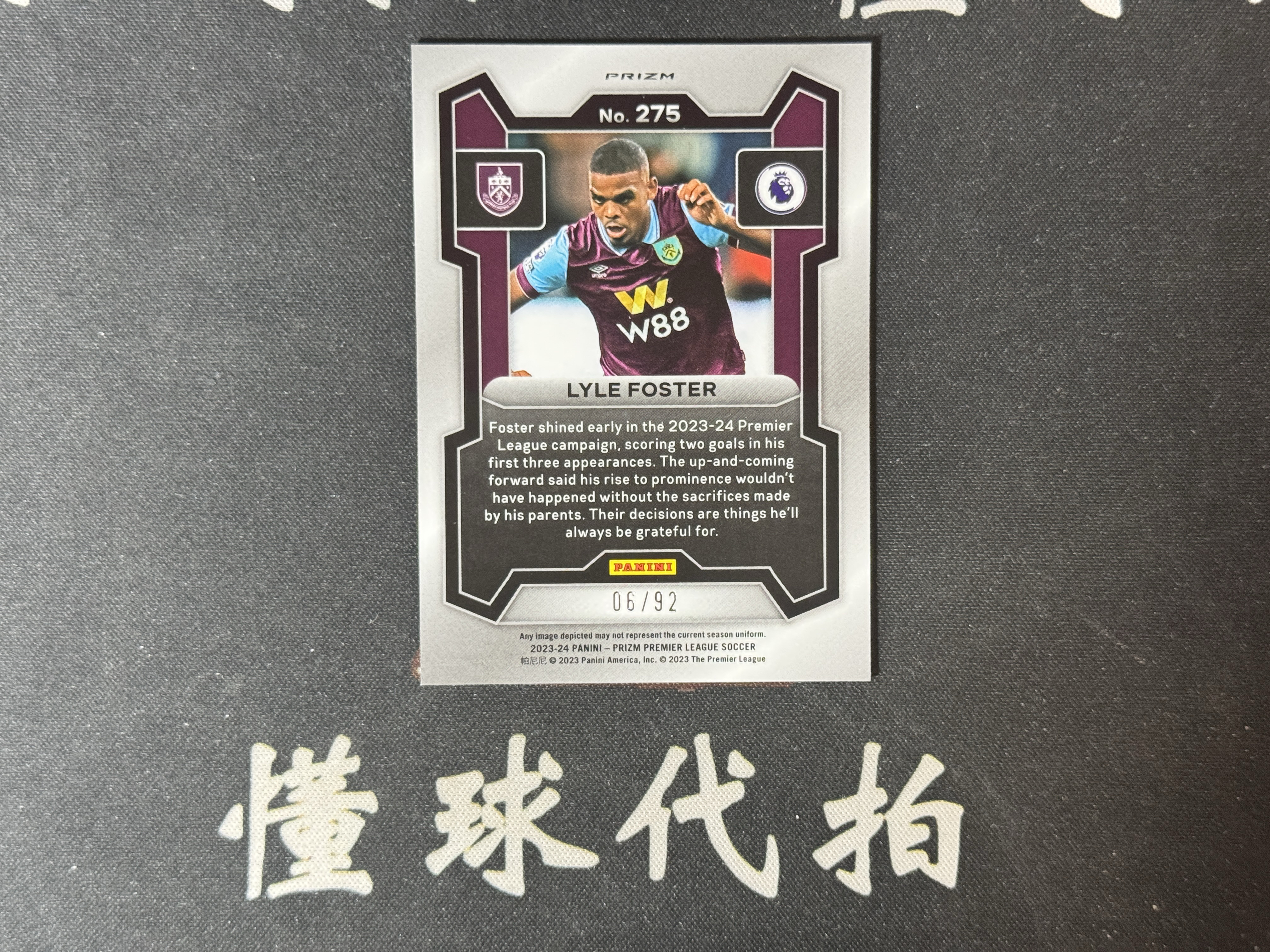 【懂球代拍】2023-24 panini 英超prizm 限量 92编 RC新秀 LYLE FOSTER福斯特 伯恩利 紫白折射 值得收藏 DQ080A 006