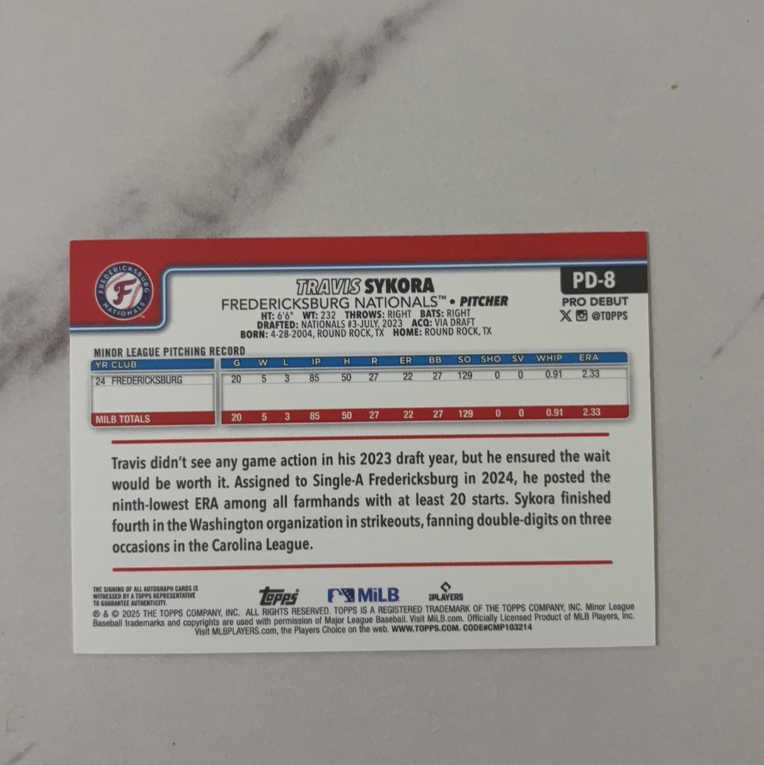 2025 Topps Limited Travis Sykora 棒球系列 华盛顿国民 新秀 特拉维斯 斯科拉 签字 收藏必备 卡品如图 暴风熊代拍 游子