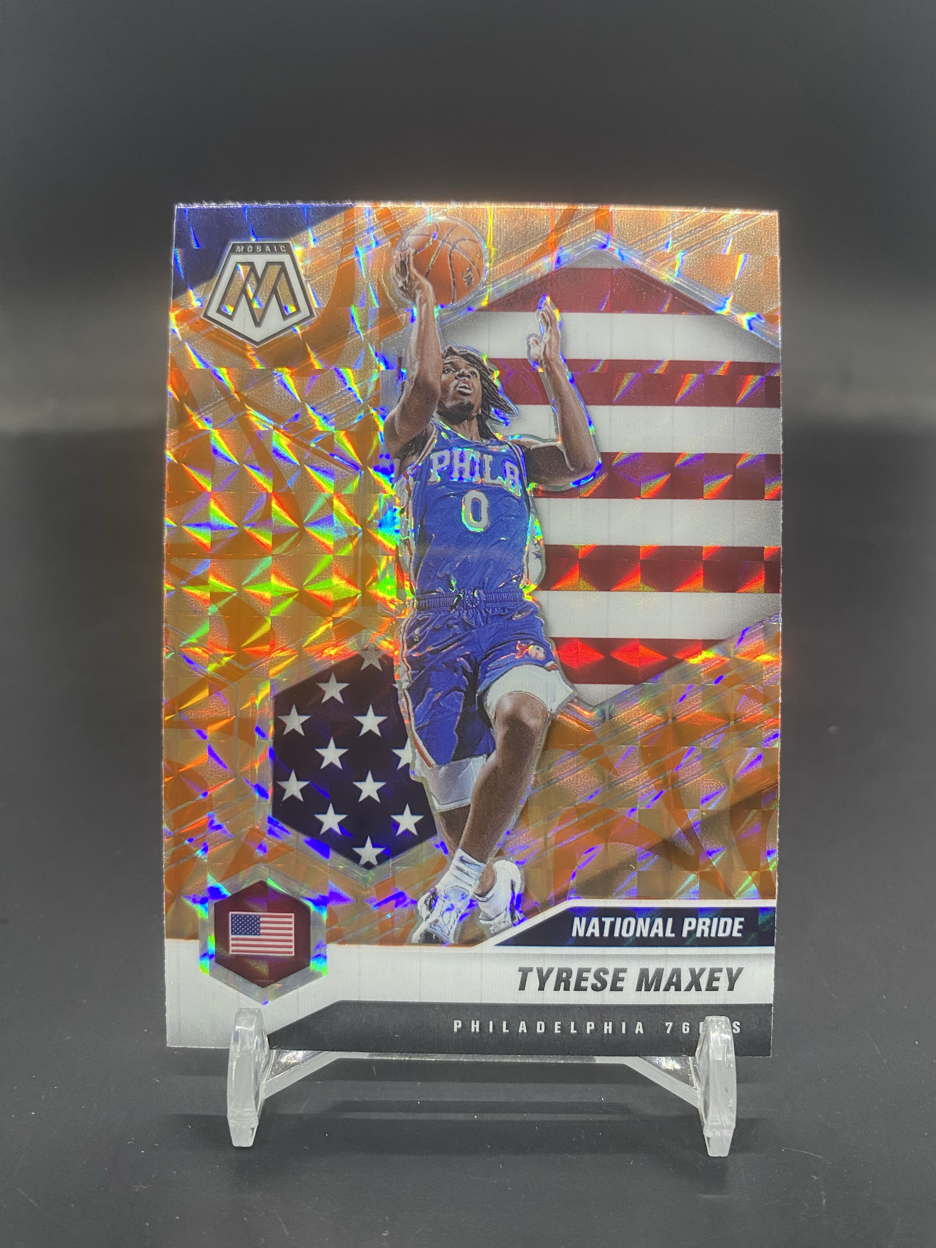 2020-21 Panini Mosaic Tyrese Maxey 马赛克 76人 泰雷塞 马克西 橙爆炸折 国旗特卡 折射 卡品如图AY-41「80」