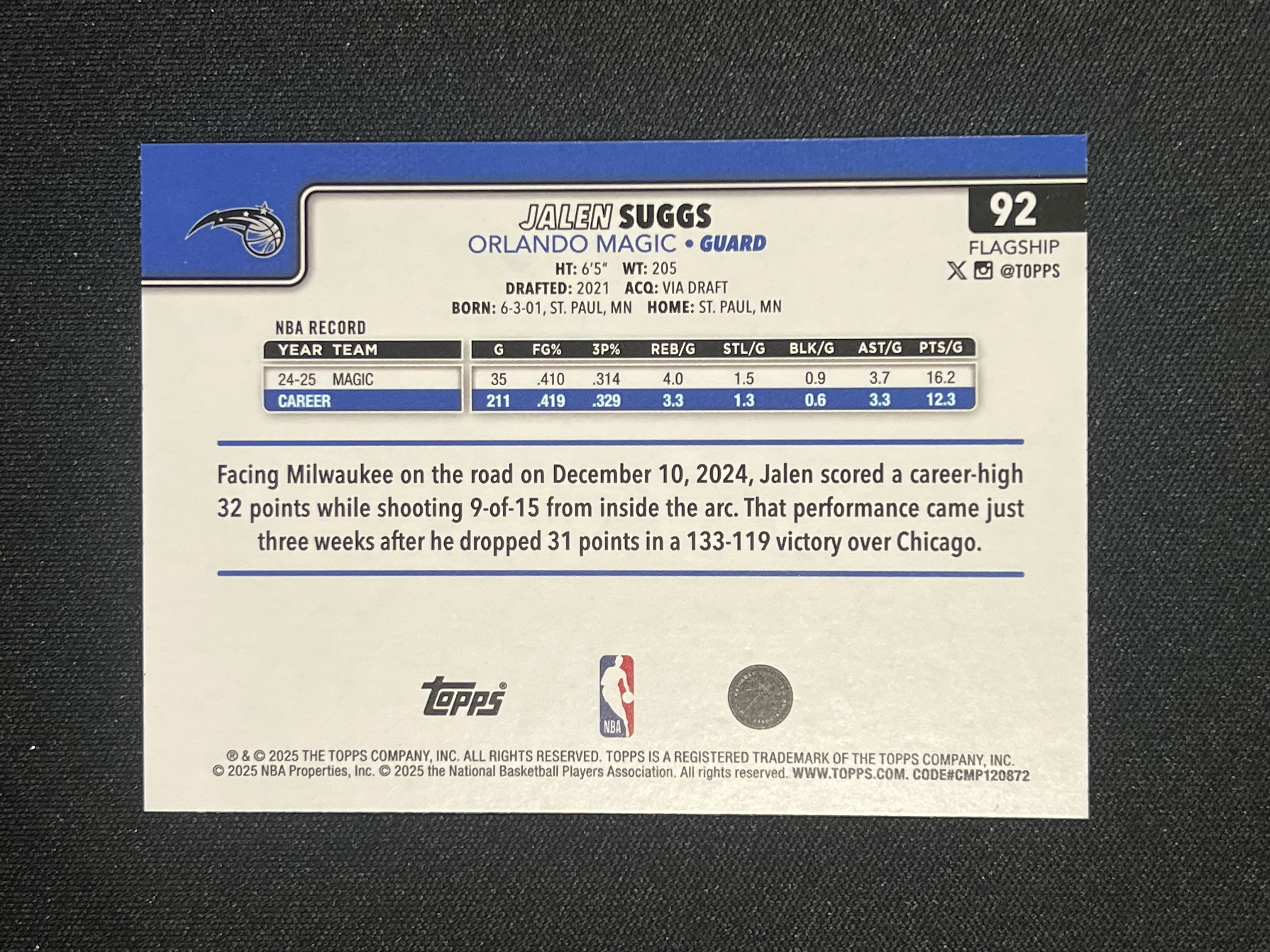 【卡卡星拍卖】2025 Topps Flagship Jalen Suggs 杰伦 萨格斯 魔术 铜平行 2025编 卡品如图 唐叁