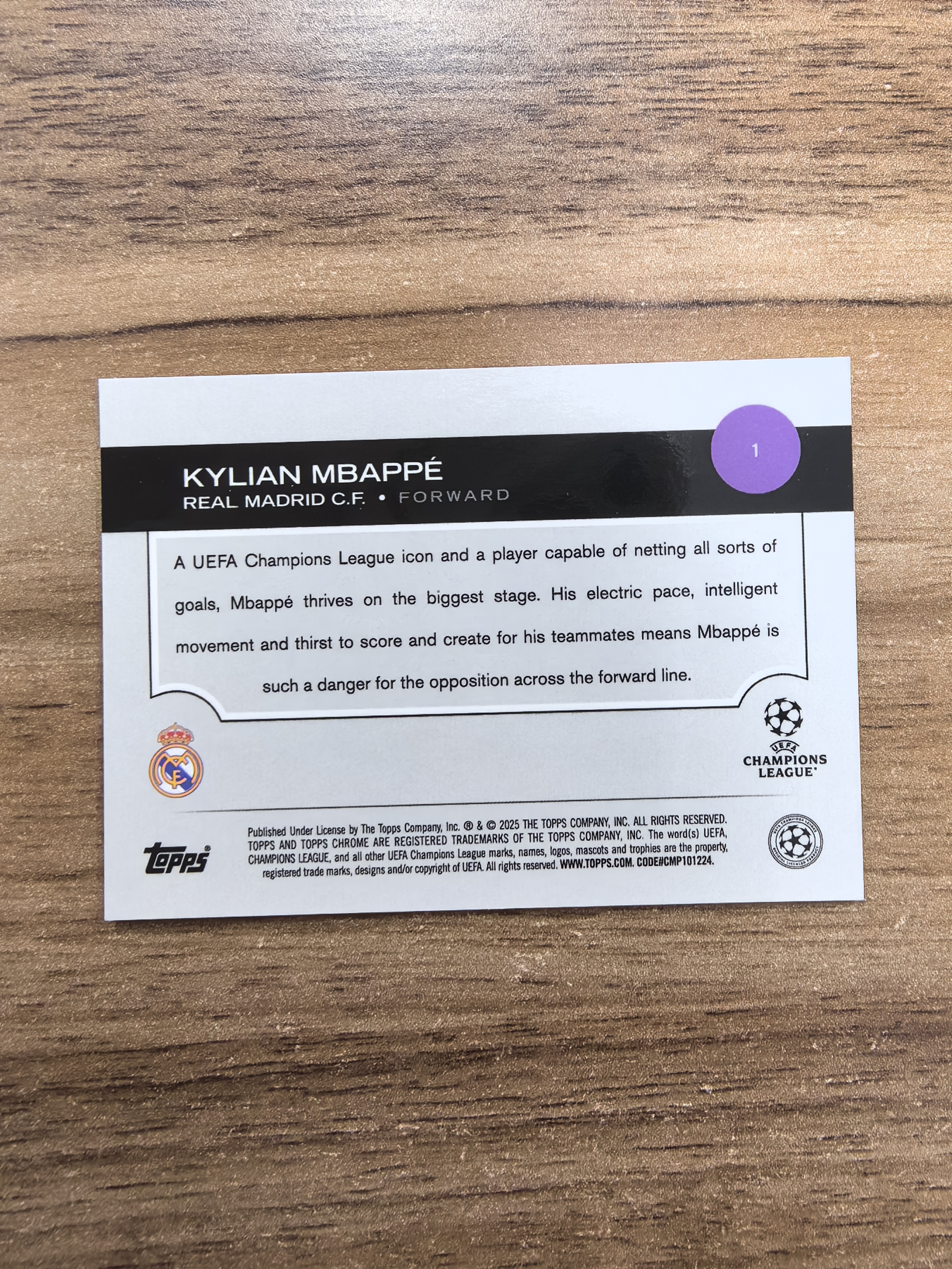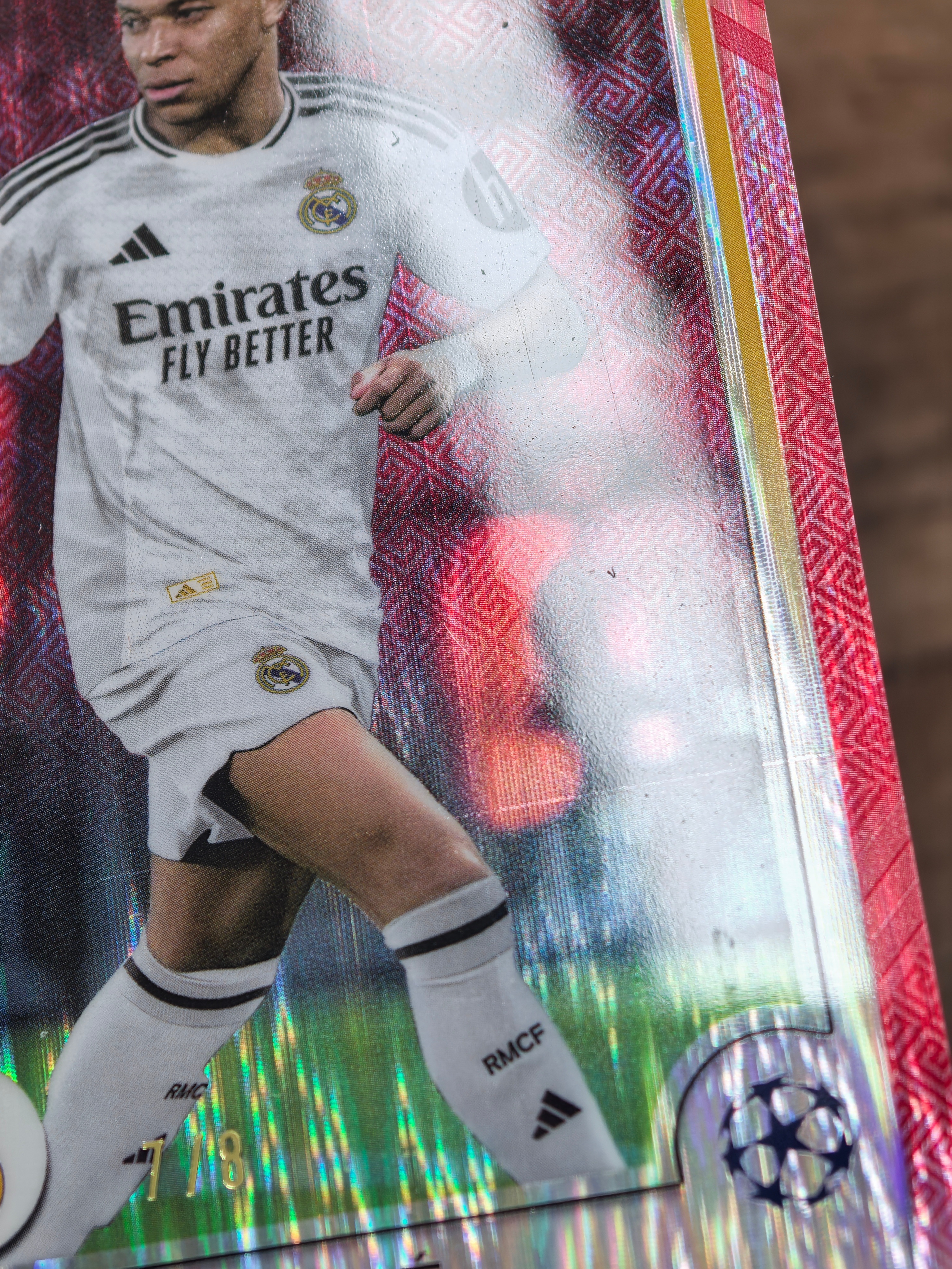 2024-25 Topps Chrome Kylian Mbappe 欧冠 皇马 基利安姆巴佩 7/8编 瀑布折 折射 微瑕 实卡精美 卡品如图 收藏必入 流浪