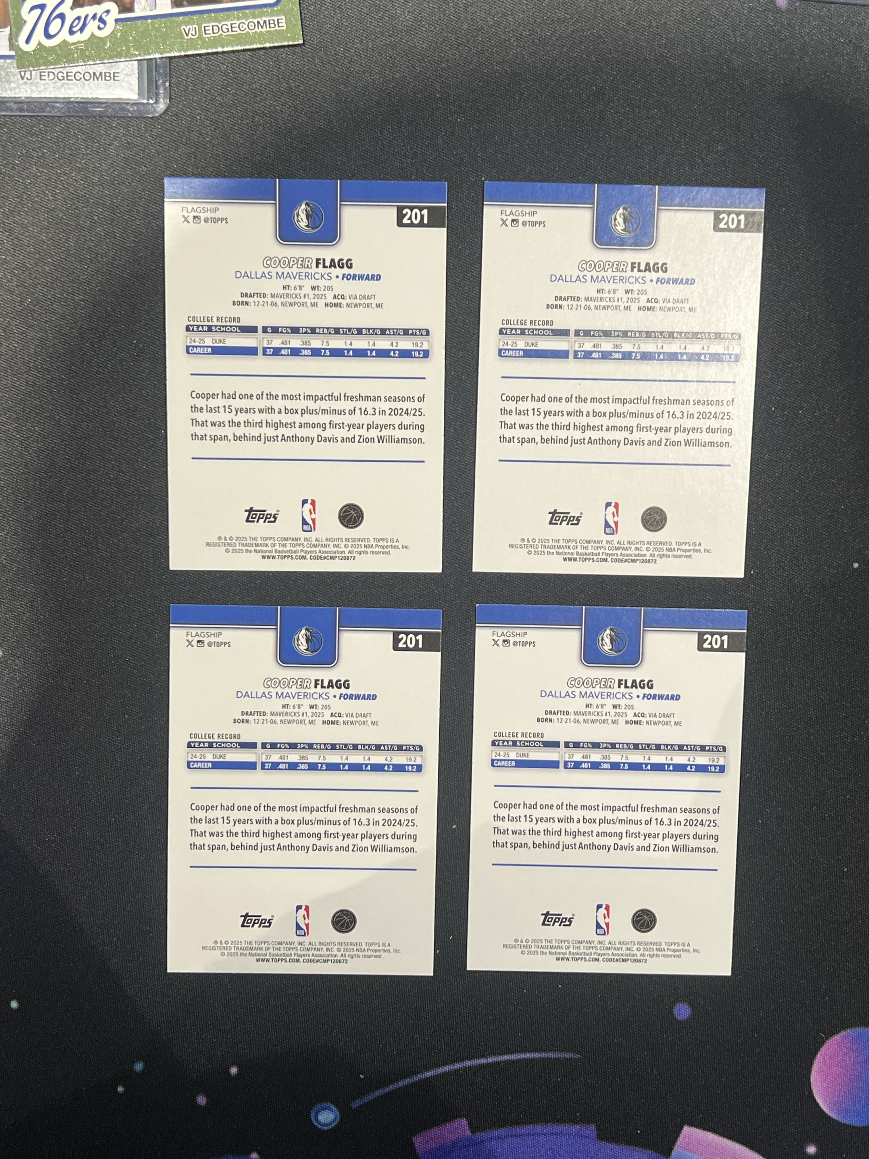 【卡卡星拍卖】2025 Topps Topps Basketball Cooper Flagg RC 独行侠 新秀RC 弗拉格 base 4张打包 卡品如图 唐叁