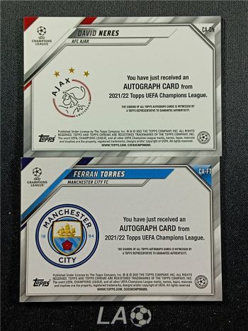 LA足球账号属于LA拍卖专注于足球的子品牌,因卡淘系统不支持跨号合并,所以分开发货计算邮费,寄售代卖咨询:laauction。卡品如图,请仔细看图,如果无图片特殊展示瑕疵均为通行品相,一般prizm optic 等系列薄卡的小划痕,国宝IMM等系列厚卡的小白边小白角,都属于通行品相。艺术家 品控勿扰。中标后请等我们合并订单再点确认付款。付款时卡淘留言说明累计或邮寄(我们会按照留言的先后顺序处理发货,请不要反复留言以免耽误给您回复)为了方便结算和卡片的累计查找,我们只合并当天的订单。邮费-顺丰(默认陆运):北京13元,非偏远外地18元,新疆西藏等偏远只发到付!超重只发到付!1000元以上的订单,建议买家自行保价,或用顺丰到付,所有快递未经保价,运输途中的损坏和丢失请于快递联系解决。(本店不支持任何普快发货,破损及丢失率太高)介意勿拍!中标可累计,累计时间2个月,每标累计金额不能超过500元,超过累计时间出现丢失或品相问题的,卡片问题由买家自行承担。累计的卡片请先付清卡款,然后卡淘上与我们联系操作,请于截标后3天转好,截标后3天未确认收到付款,一律卡淘投诉处理。
