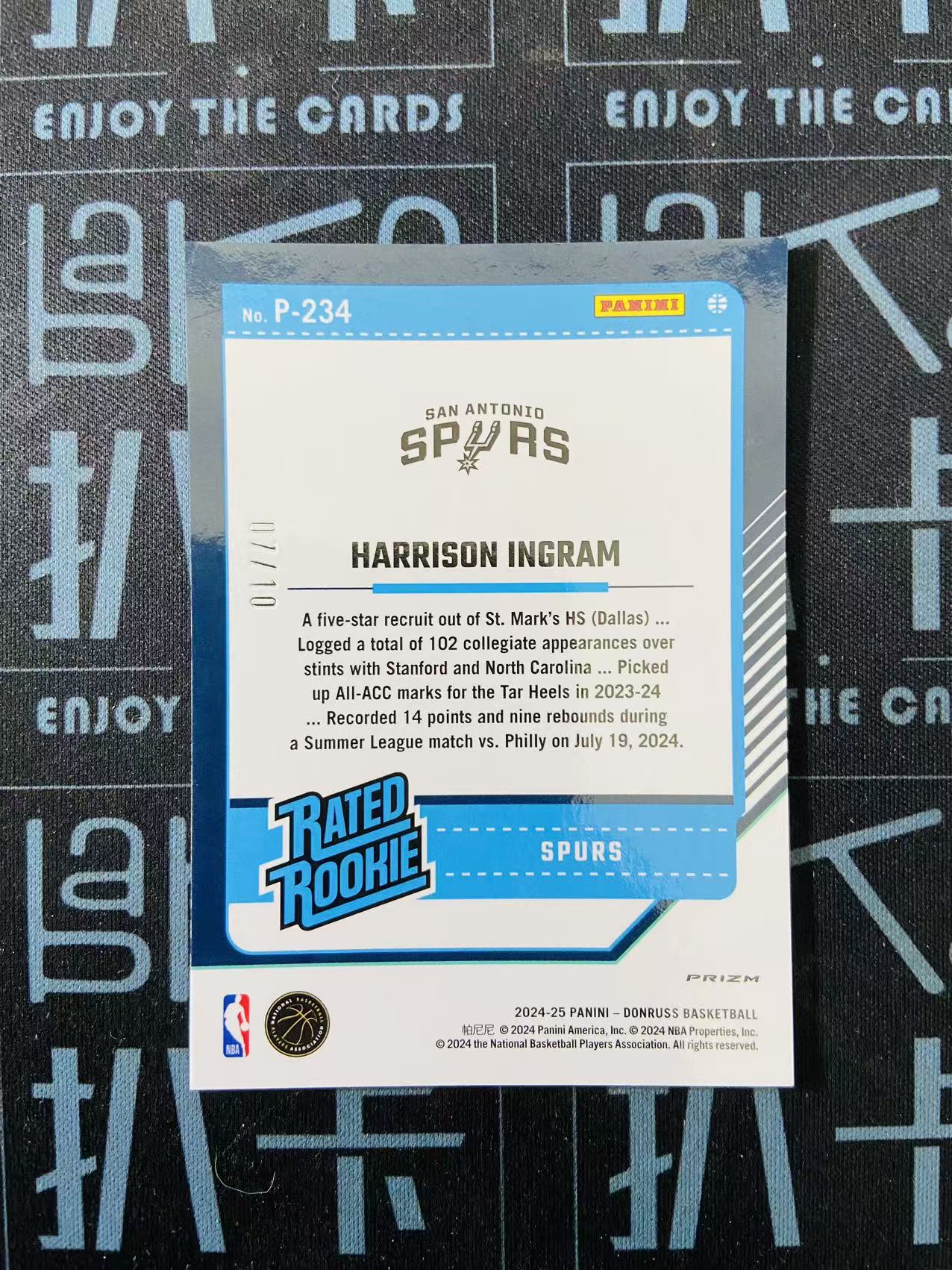 【扒卡拍卖】2024-25 Donruss 杜蕾斯 HARRISON INGRAM 哈里森英格拉姆 新秀RC /10编 金折折射 马刺 未来可期 收藏必备 师门1124BK66【拍前请看描述】