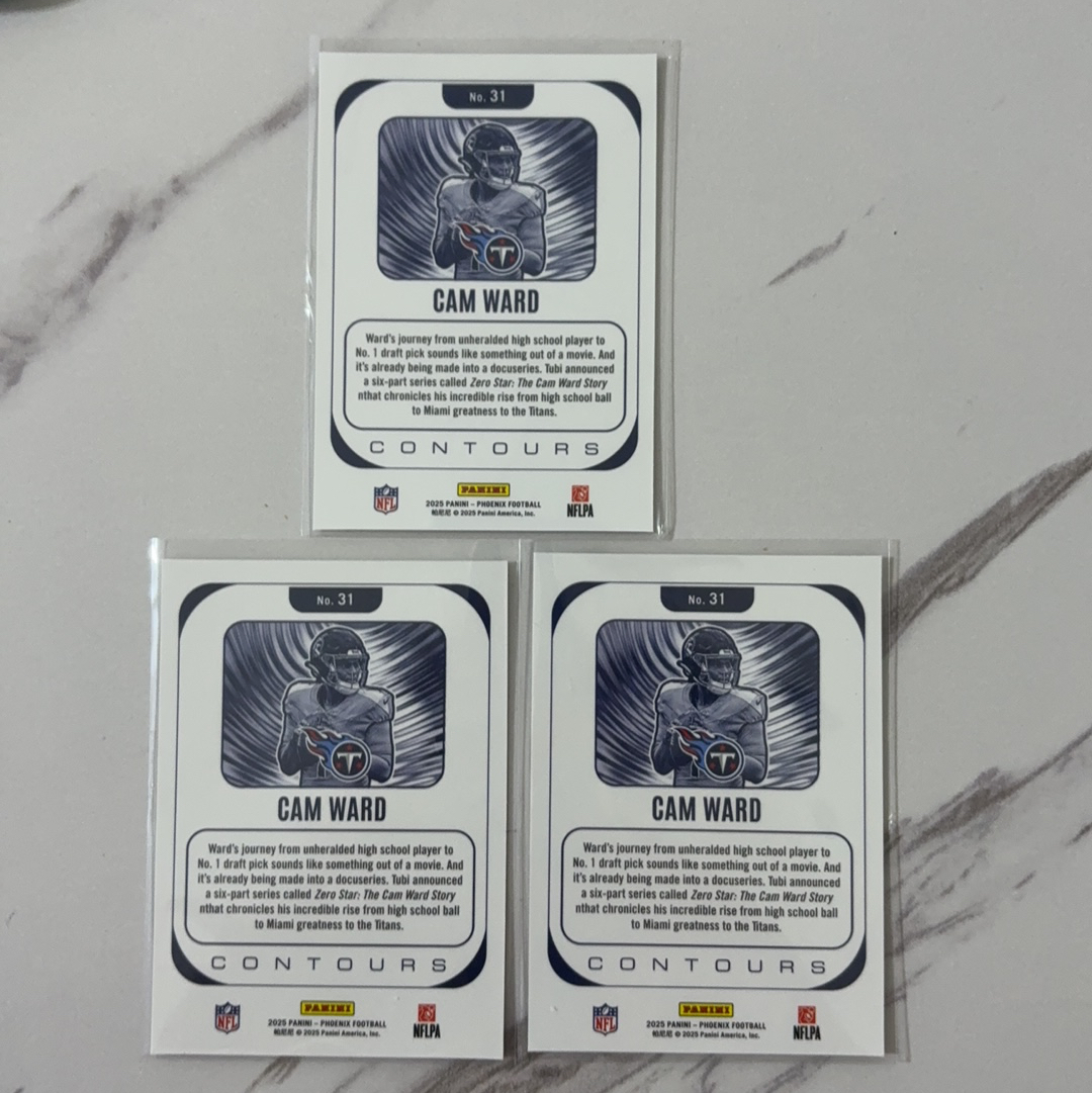 2025 Panini Phoenix Cam Ward 橄榄球凤凰系列 田纳西泰坦 RC新秀 卡姆 沃德 三张银折 Contours特卡 收藏必备 卡品如图 暴风熊代拍 游子