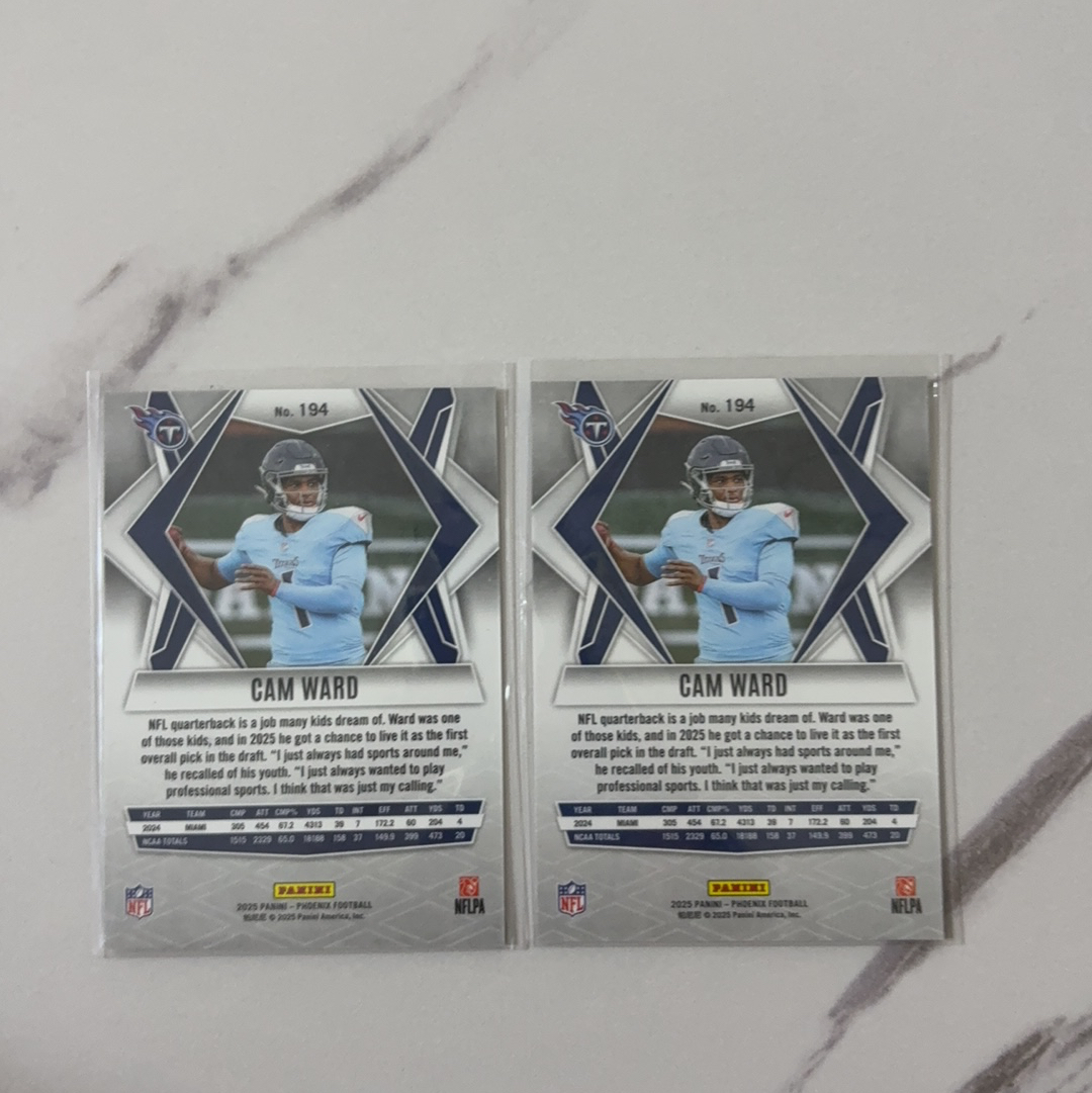 2025 Panini Phoenix Cam Ward 橄榄球凤凰系列 田纳西泰坦 RC新秀 卡姆 沃德 2张银折 收藏必备 卡品如图 暴风熊代拍 游子