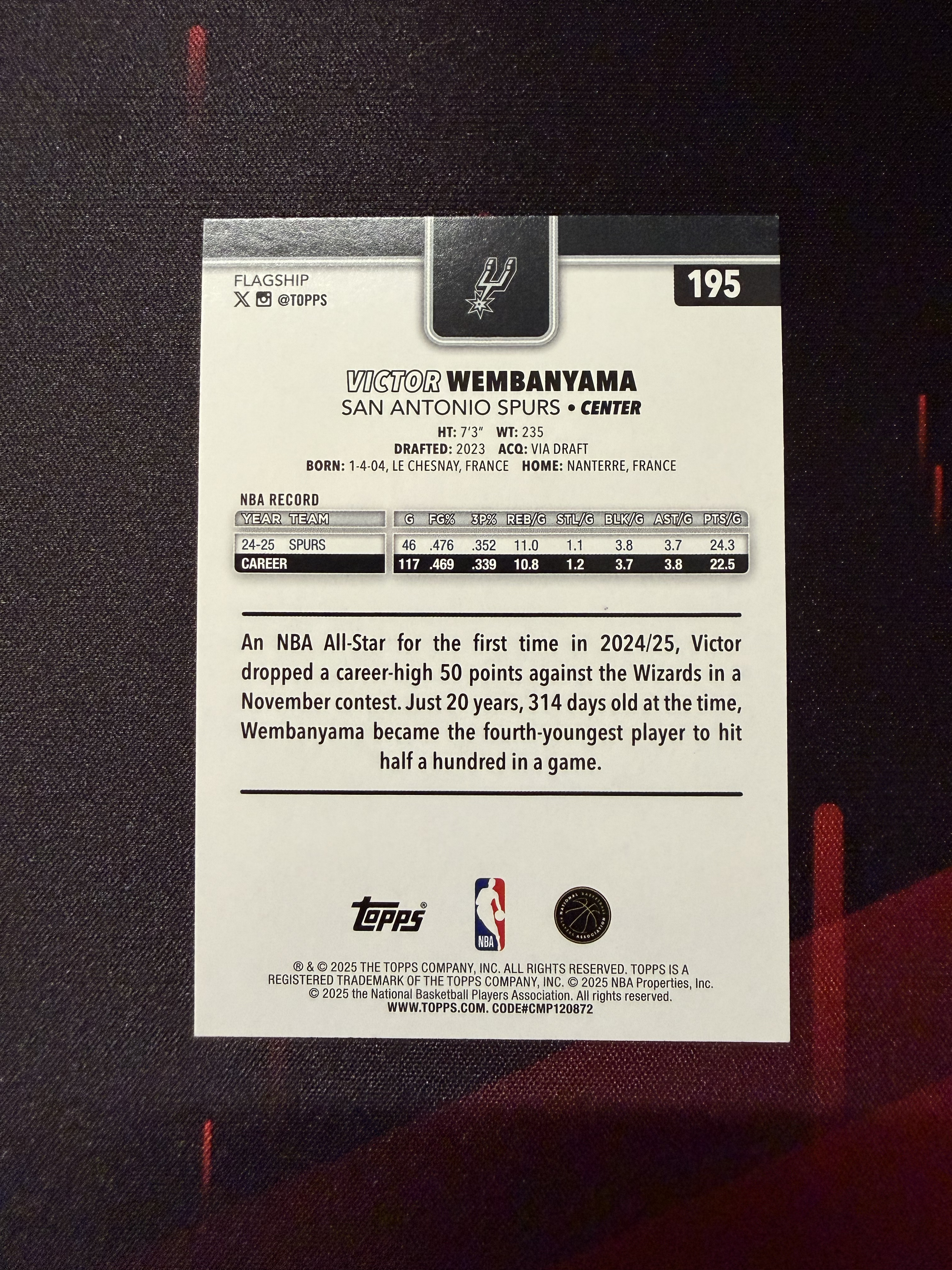 2025 Topps Flagship Basketball Victor Wembanyama Topps篮球旗舰 维克托 文班亚马 超级天赋怪 马刺 新赛季打爆所有人 紫折 077/250编