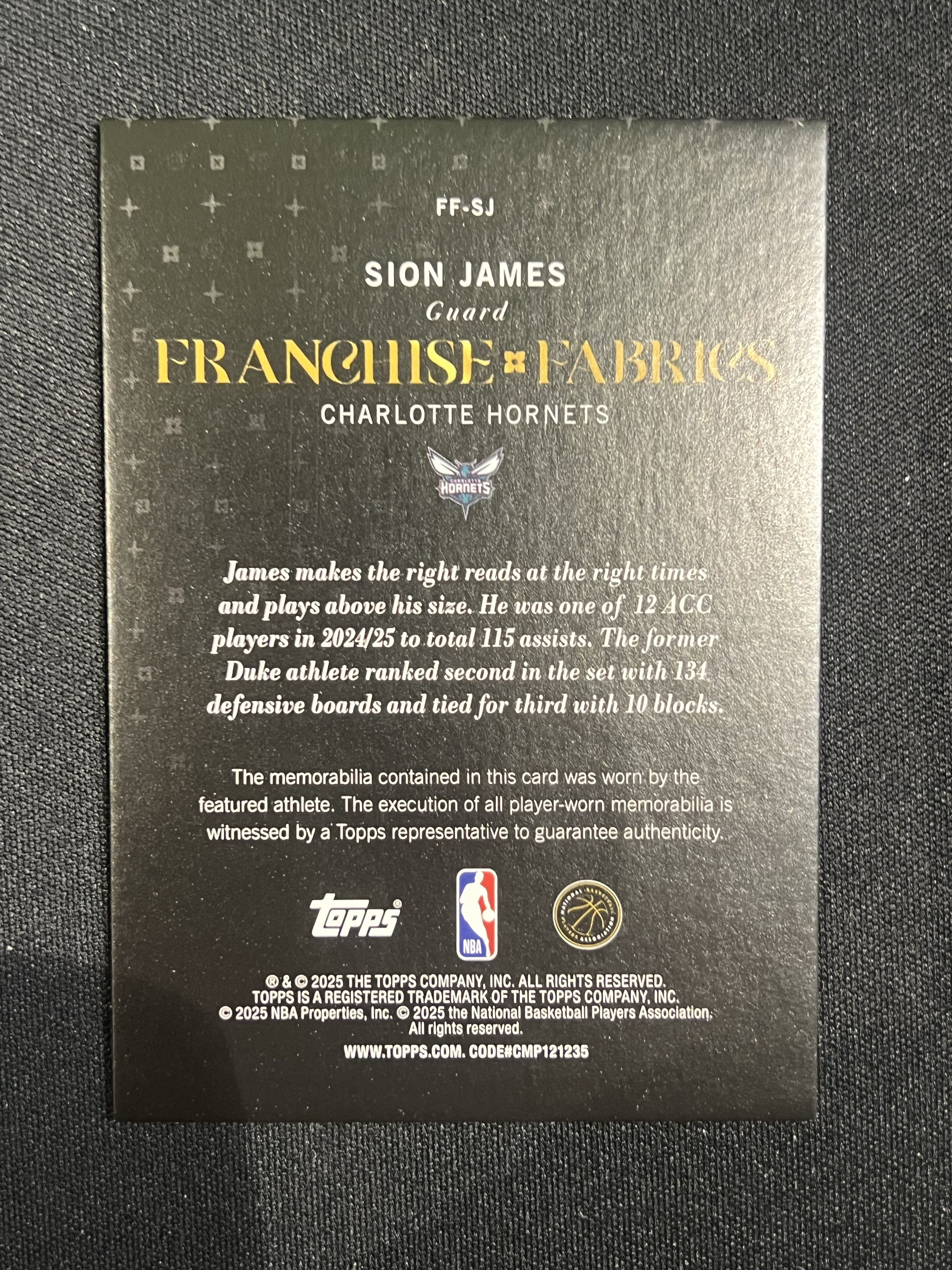 【卡卡星拍卖】 2025 Topps Flagship Sion James 夏洛特黄蜂 锡安 詹姆斯 RC 新秀 物料 小窗pacth 卡品如图 cory