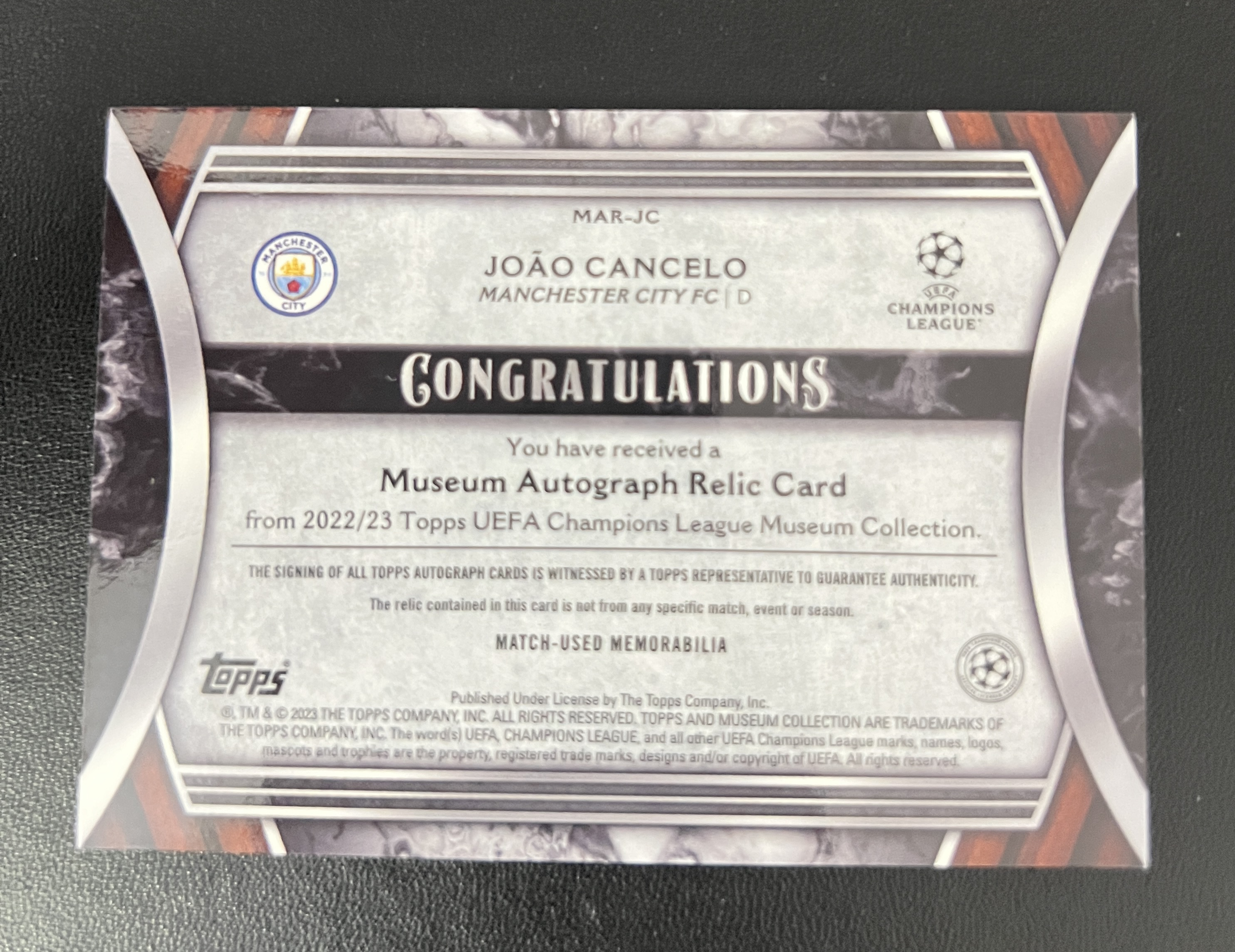 2022-23 Topps UEFA Champions League Joao Cancelo 博物馆 欧冠 João Cancelo 坎塞洛 曼城 欧冠 签字 patch物料切割 25编