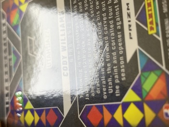 7.卡品:所有卡片,均不保卡品,optic、马赛克、prizm等系列卡片出现生产线及弯曲的情况属于正常一般通行品,Noir国宝IMM小真金老卡等系列厚卡,有白边白角属于正常卡品,镜面卡签有小划痕属于正常通行品相,根据平台规则评级卡只看评级分数!评级卡砖上的划痕和破损不属于品相问题,折射系列不保证金标,要评级追求金标者请直接购买金标,如需卡片其他细节图,还请请站内信联系;评级和原封卡砖卡夹的卡不负责品相问题。签收超过3天不处理卡品问题!