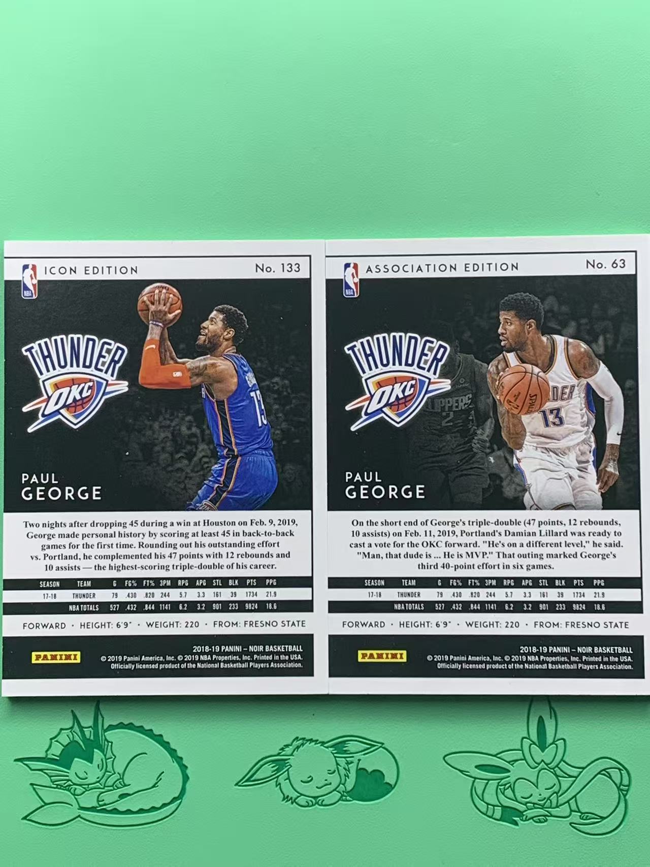2018-19 Panini Noir Paul George 诺尔系列 保罗 乔治 泡椒 雷霆时期 拼图 队徽 特卡 主客场 2张打包 85编 卡角略钝 卡品瑕疵如图 介意勿拍