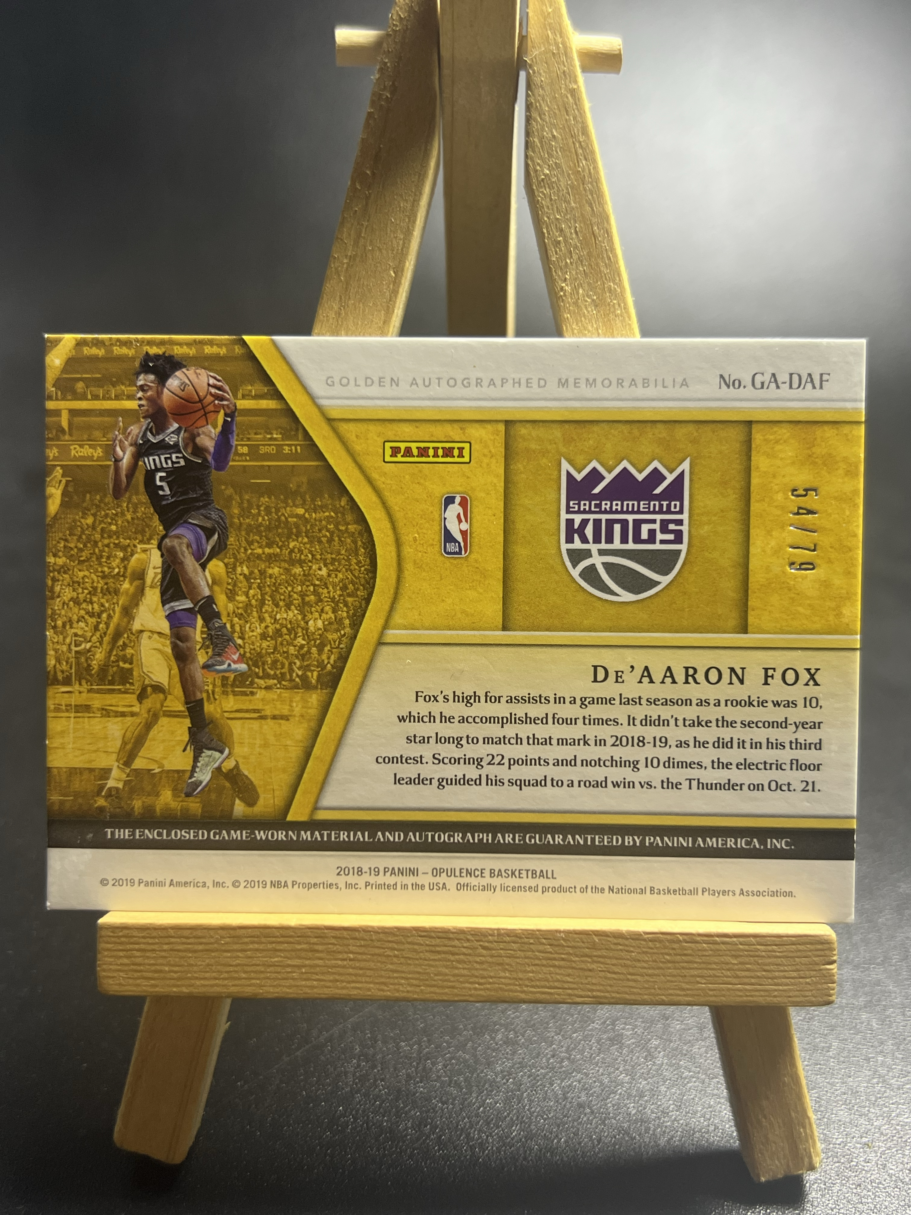 2017-18 Panini Opulence De'Aaron Fox RC 金书 国王 新秀 达龙 福克斯 小狐狸 54/79编 rpa 签字 卡签 梅尔顿 叉叉拍卖