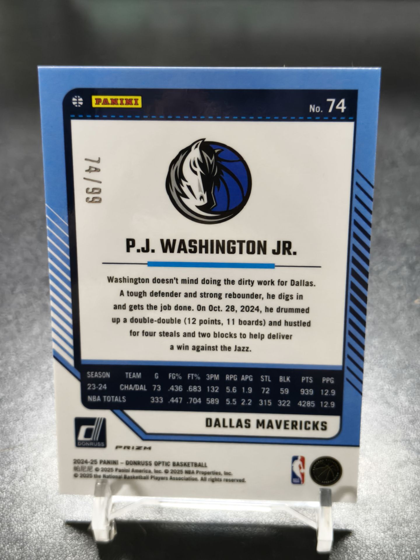 【浩行拍卖 截标预付82%】2024-25 panini donruss optic pj washington jr 杜蕾斯 独行侠 pj 华盛顿 红金圈圈折 折射 74/99编 专收必备「功业」1119K03劉