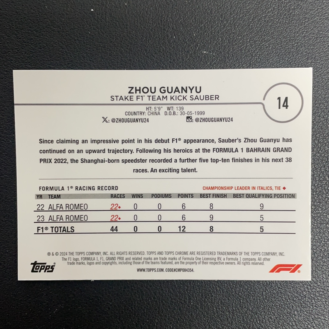 【大满拆】(林)2024 Topps Chrome Guanyu Zhou F1 赛程 中国  周冠宇 变形虫折 银熔岩折 折射 索博车队 中国第一人 卡品如图 收藏必备