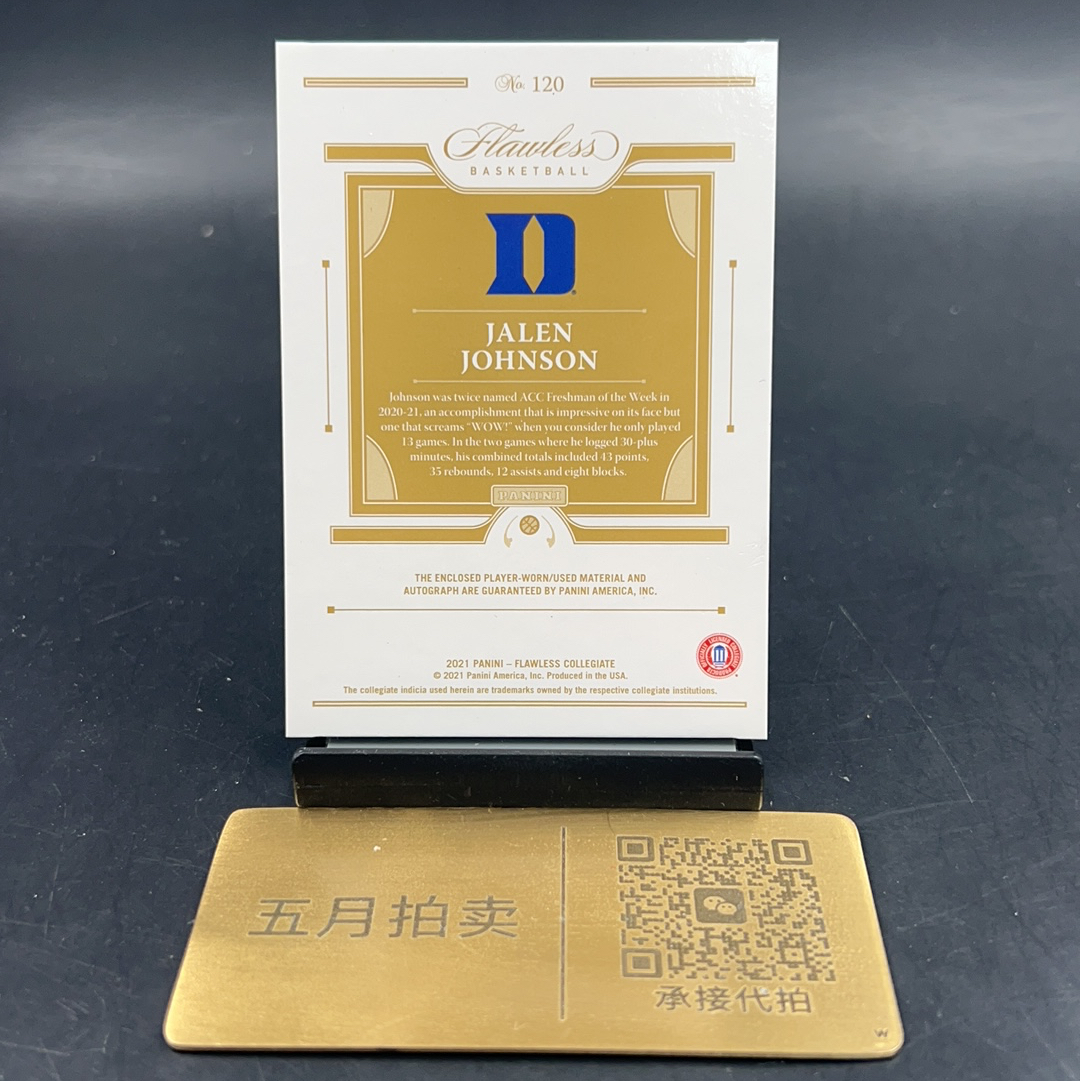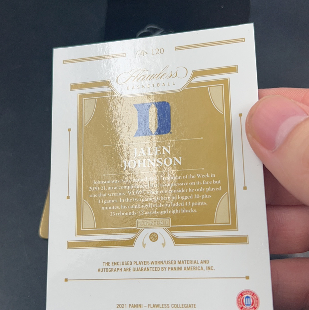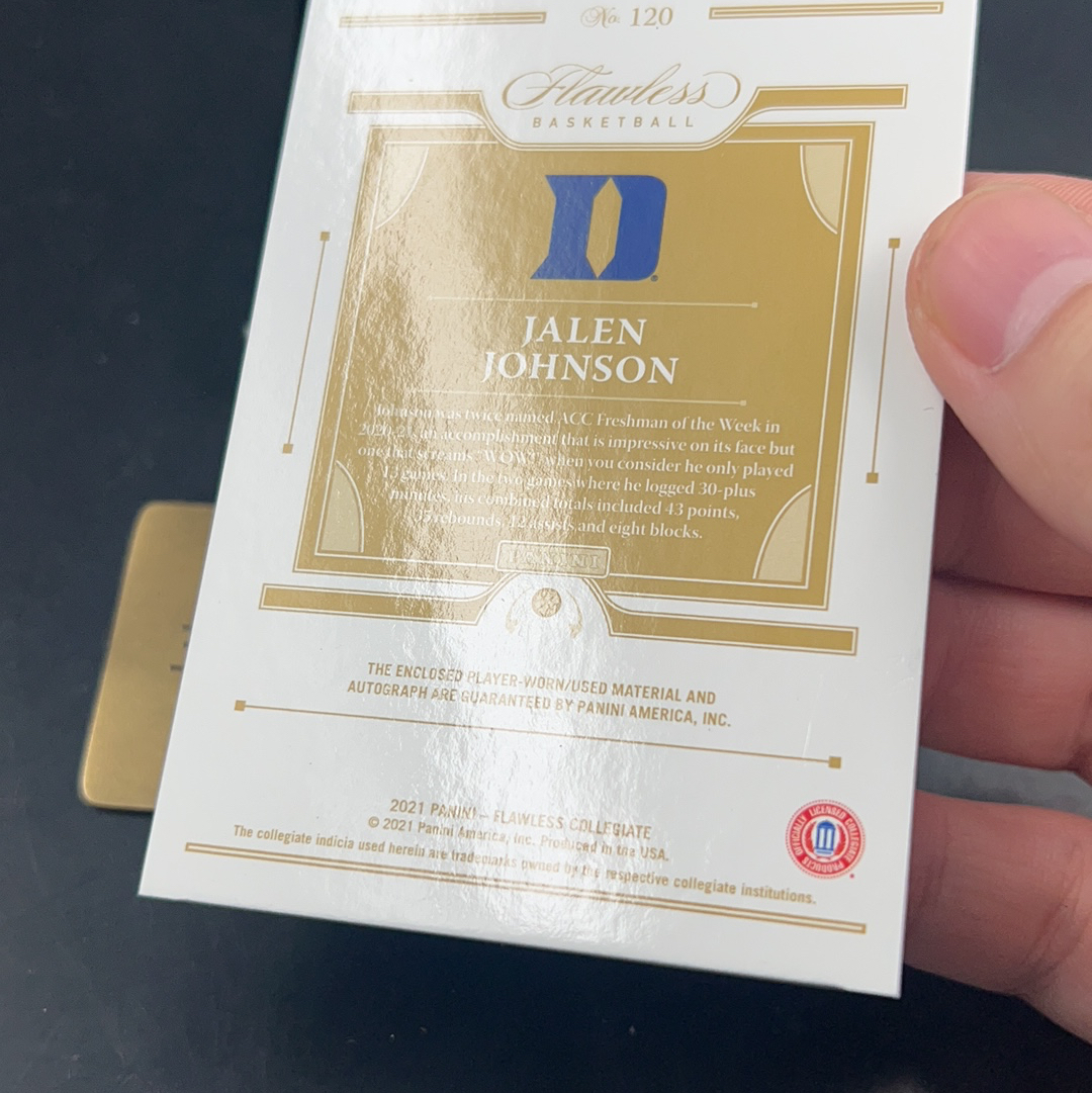 2021 Panini Flawless Jalen Johnson RC 【五月拍卖】杰伦 约翰逊 杜克大学 鹰王 新秀 手提 签字卡签 球衣物料 亲穿 patch 21/25编 轻印见图塘桥不死鸟
