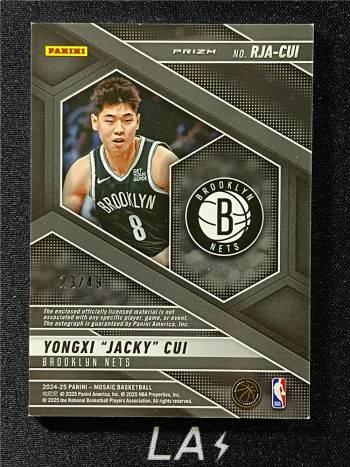 LA直通车属于LA拍卖专注于服务卡店的子品牌,因卡淘系统不支持跨号合并,所以分开发货计算邮费,卡品如图,请仔细看图,如果无图片特殊展示瑕疵均为通行品相,一般prizm optic 等系列薄卡的小划痕,国宝IMM等系列厚卡的小白边小白角,都属于通行品相。艺术家 品控勿扰。中标后请等我们合并订单再点确认付款。付款时卡淘留言说明累计或邮寄,避免纠纷只发卡淘默认地址(我们会按照留言的先后顺序处理发货,请不要反复留言以免耽误给您回复)为了方便结算和卡片的累计查找,我们只合并当天的订单。邮费-顺丰(默认陆运):北京13元,非偏远外地18元,新疆西藏等偏远只发到付!超重只发到付!1000元以上的订单,建议买家自行保价,或用顺丰到付,所有快递未经保价,运输途中的损坏和丢失请于快递联系解决。(本店不支持任何普快发货,破损及丢失率太高)介意勿拍!中标可累计,累计时间2个月,每标累计金额不能超过1000元,累计商品不支持任何售后,累计超时未联系发货的,发生损坏、丢失问题 由买家自行承担损失。累计的卡片请先付清卡款,然后站内信留言提货吗,请于截标后3天转好,截标后5天未确认收到付款,一律卡淘投诉处理。寄售代卖咨询:laauction。(此微信用于代卖业务,卡淘订单问题卡淘站内信留言,客服上班逐一回复~)