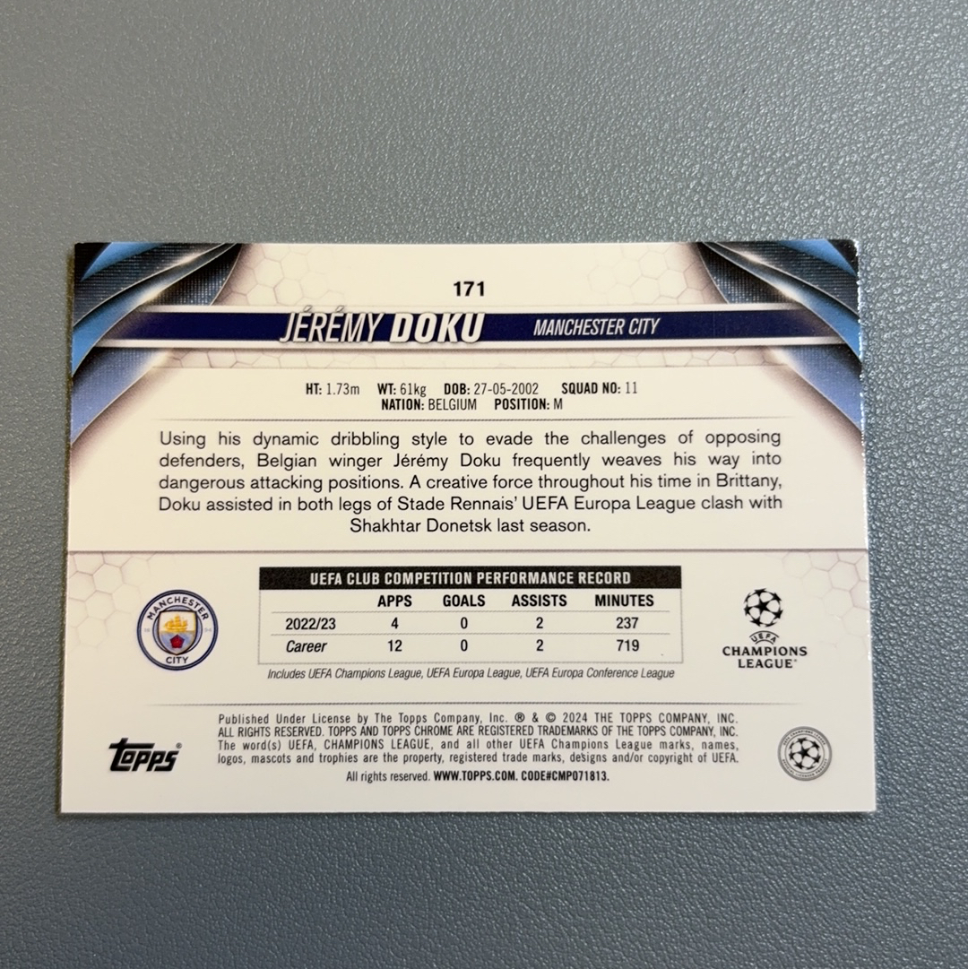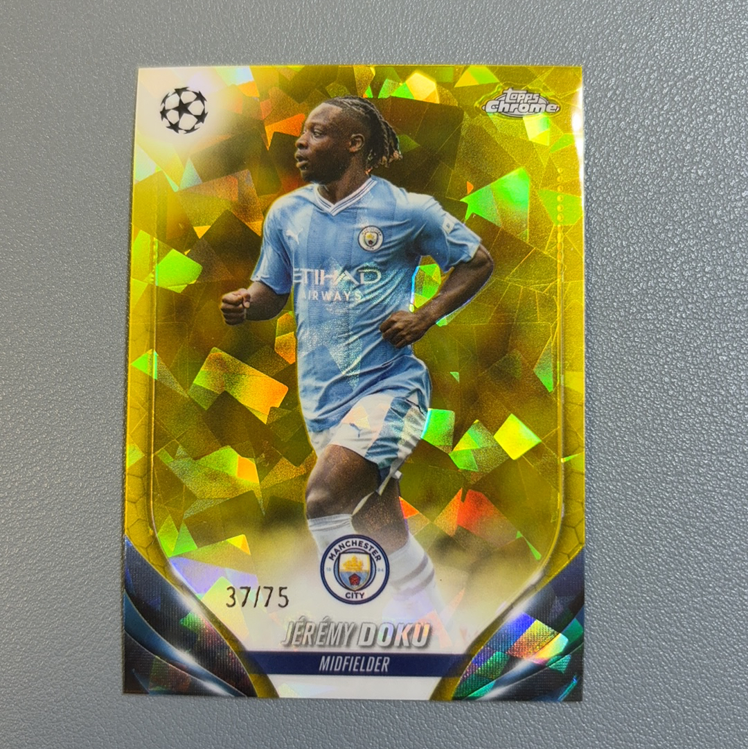 【风速狗】2023-24 Topps Sapphire Chrome 欧冠 蓝宝石 曼城 DOKU 多库 37/75编 黄碎冰 路