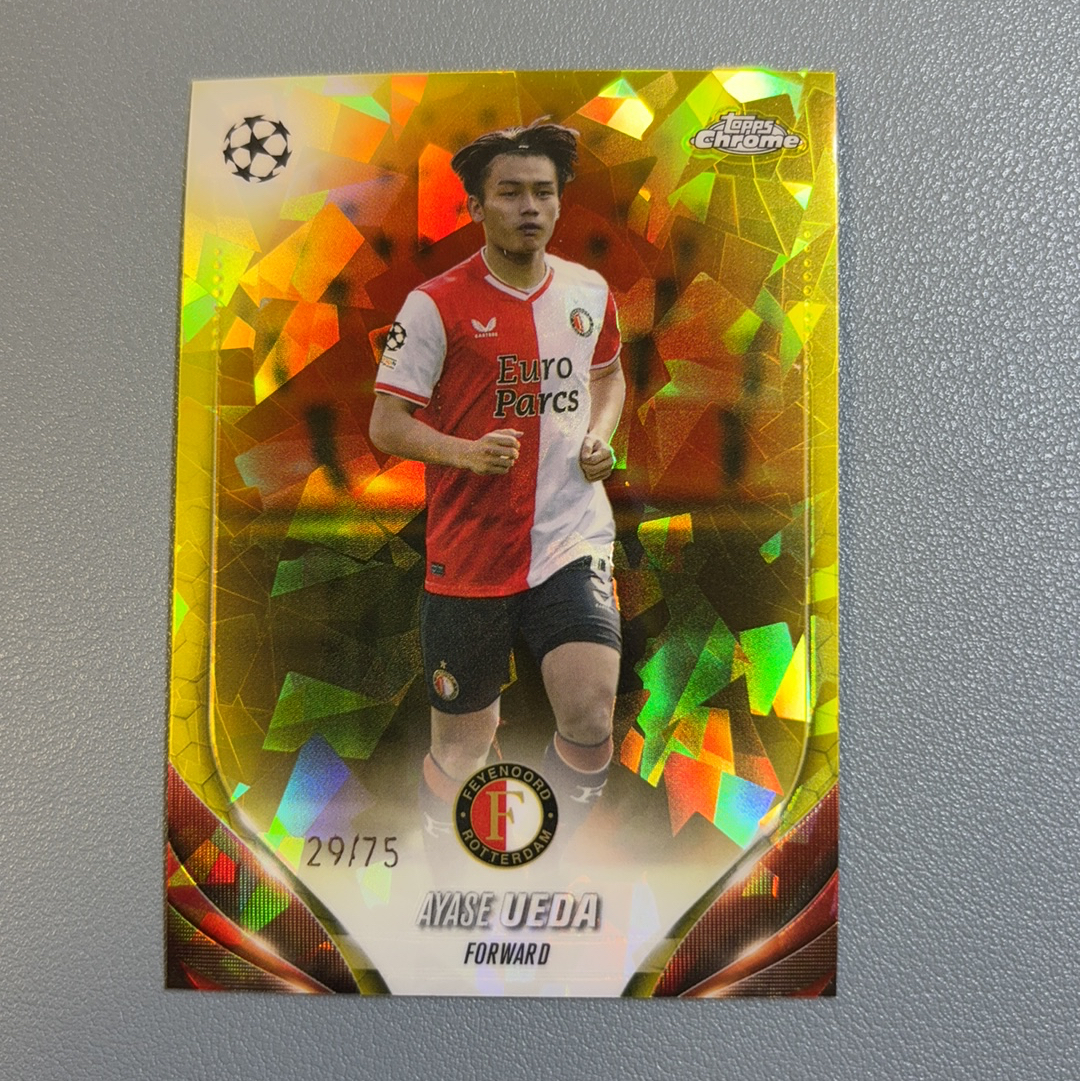 【风速狗】2023-24 Topps Sapphire Chrome 欧冠 蓝宝石 蓝宝石 Ayase Ueda 上田绮世 费耶诺德 欧冠 29/75编 黄碎冰 路