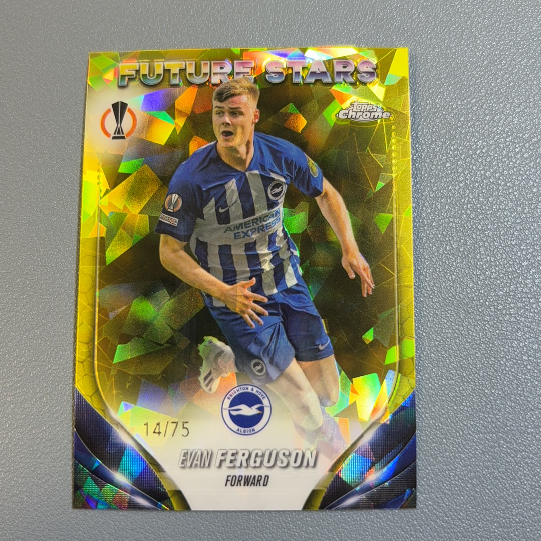 【风速狗】2023-24 Topps Sapphire Chrome 欧冠 蓝宝石 布莱顿 EVAN FERGUSON 埃文弗格森 14/75编 黄碎冰 路