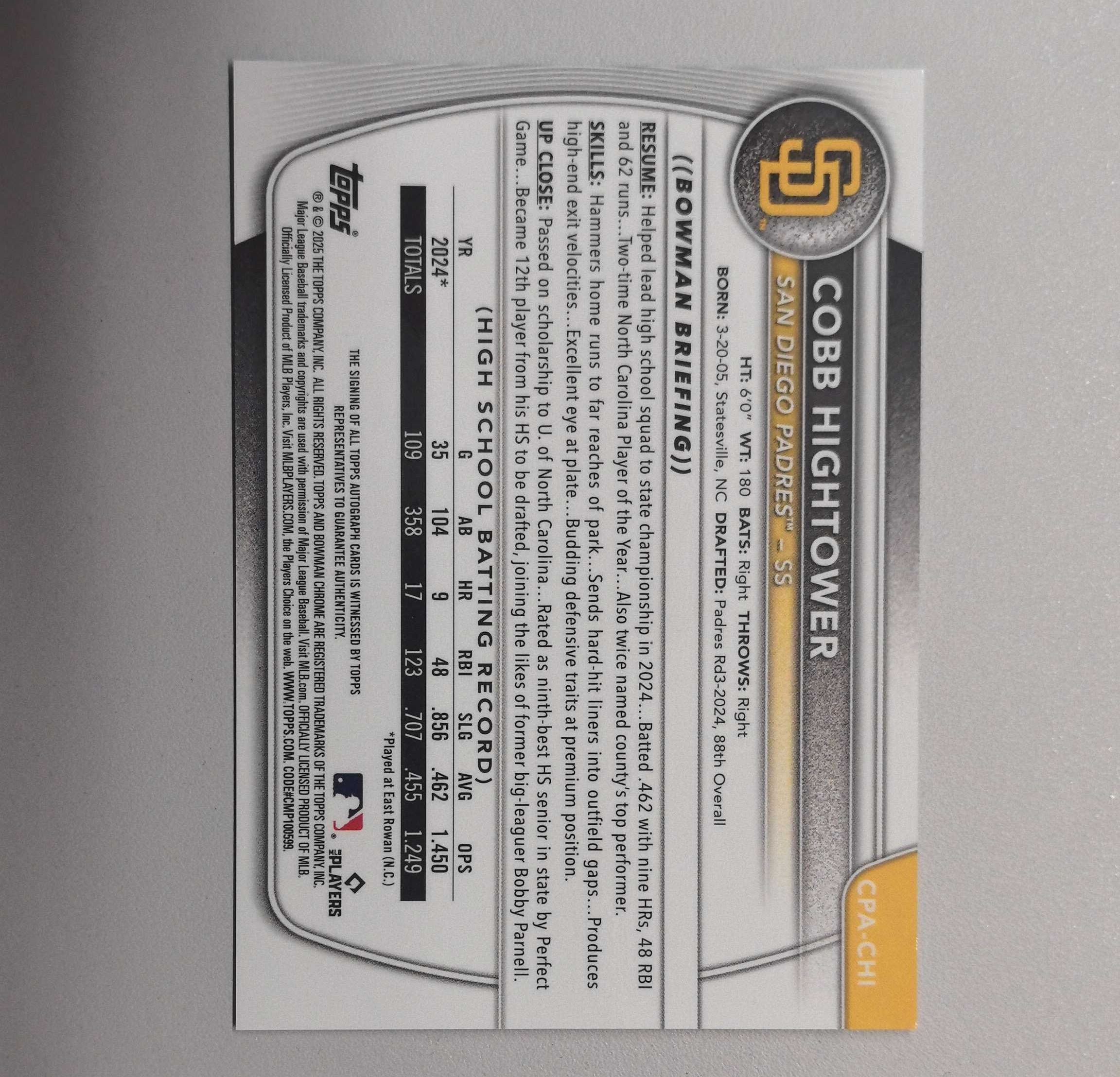 2025 Topps 【锡安代卖】 累计照常 棒球mlb bowman 1st新秀签字卡签 碎点折299编 圣迭戈教士热门新秀大物 Cobb Hightower 卡品如图 卖卡锡