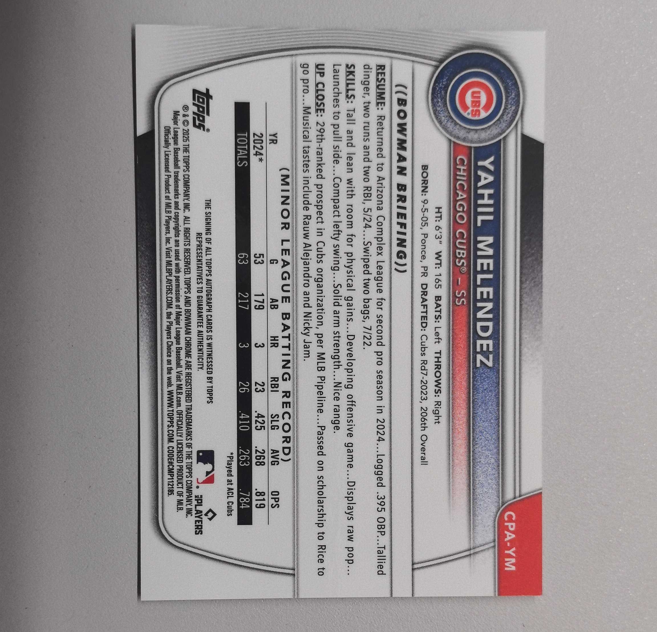 2025 Topps 【锡安代卖】 累计照常 棒球mlb bowman 1st新秀签字卡签 芝加哥小熊热门新秀大物 Yahil Melendez 卡品如图 卖卡锡