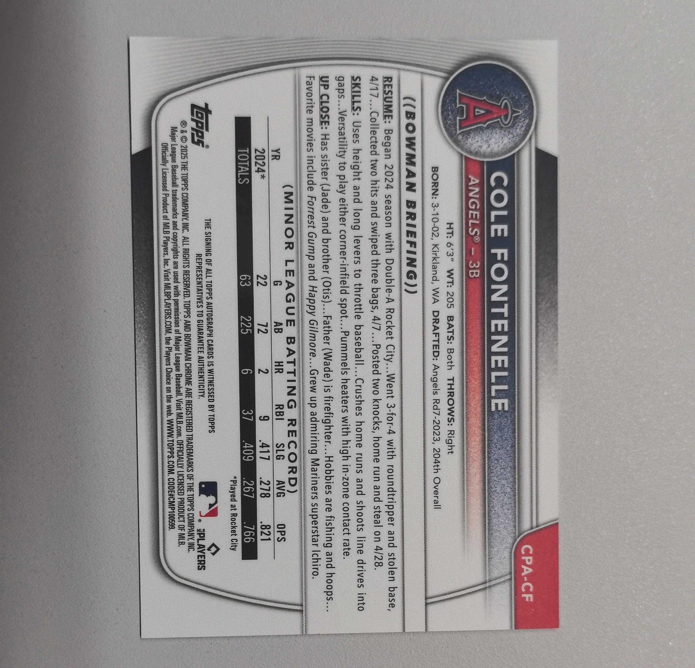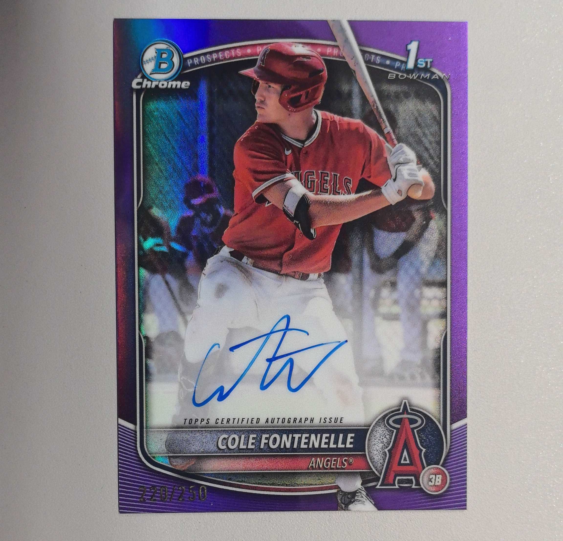 2025 Topps 【锡安代卖】 累计照常 棒球mlb bowman 1st新秀签字卡签 紫折250编 亚特兰大勇士热门新秀大物 Cole Fontenelle 卡品如图 卖卡锡