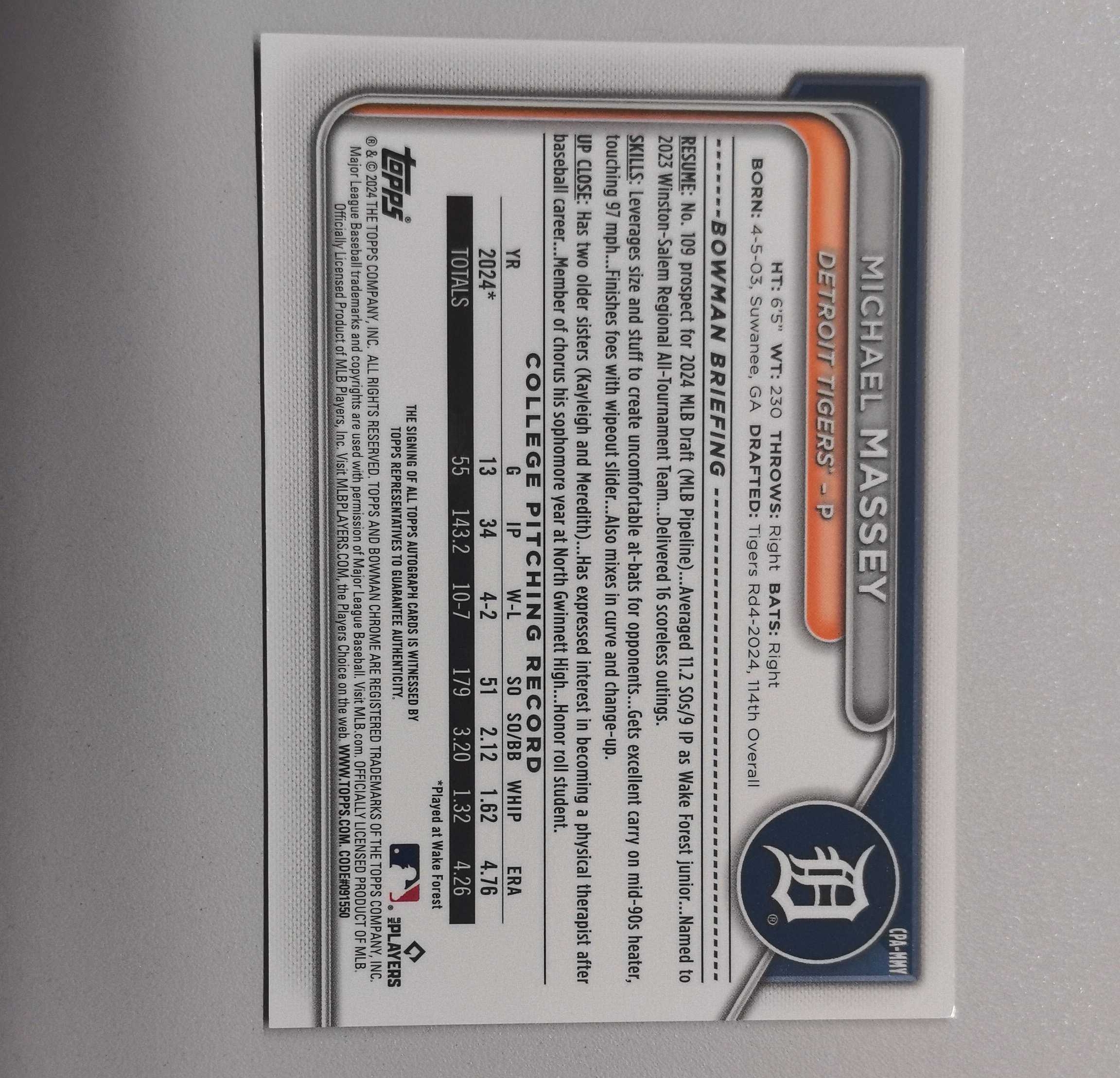 2025 Topps 【锡安代卖】 累计照常 棒球mlb bowman 新秀签字卡签 蓝波纹折150编 底特律老虎热门新秀大物 Michael Massey 卡品如图 卖卡锡