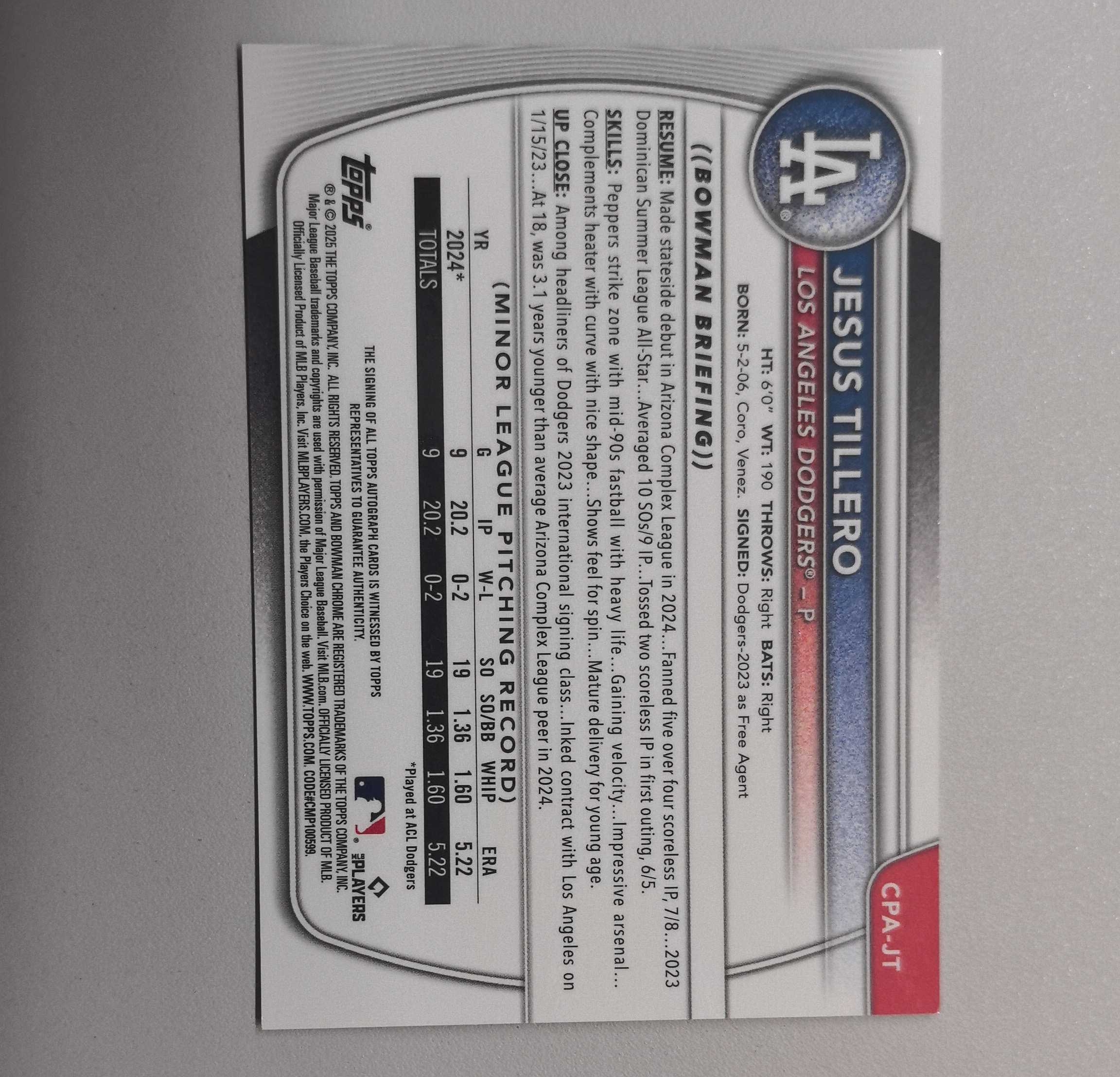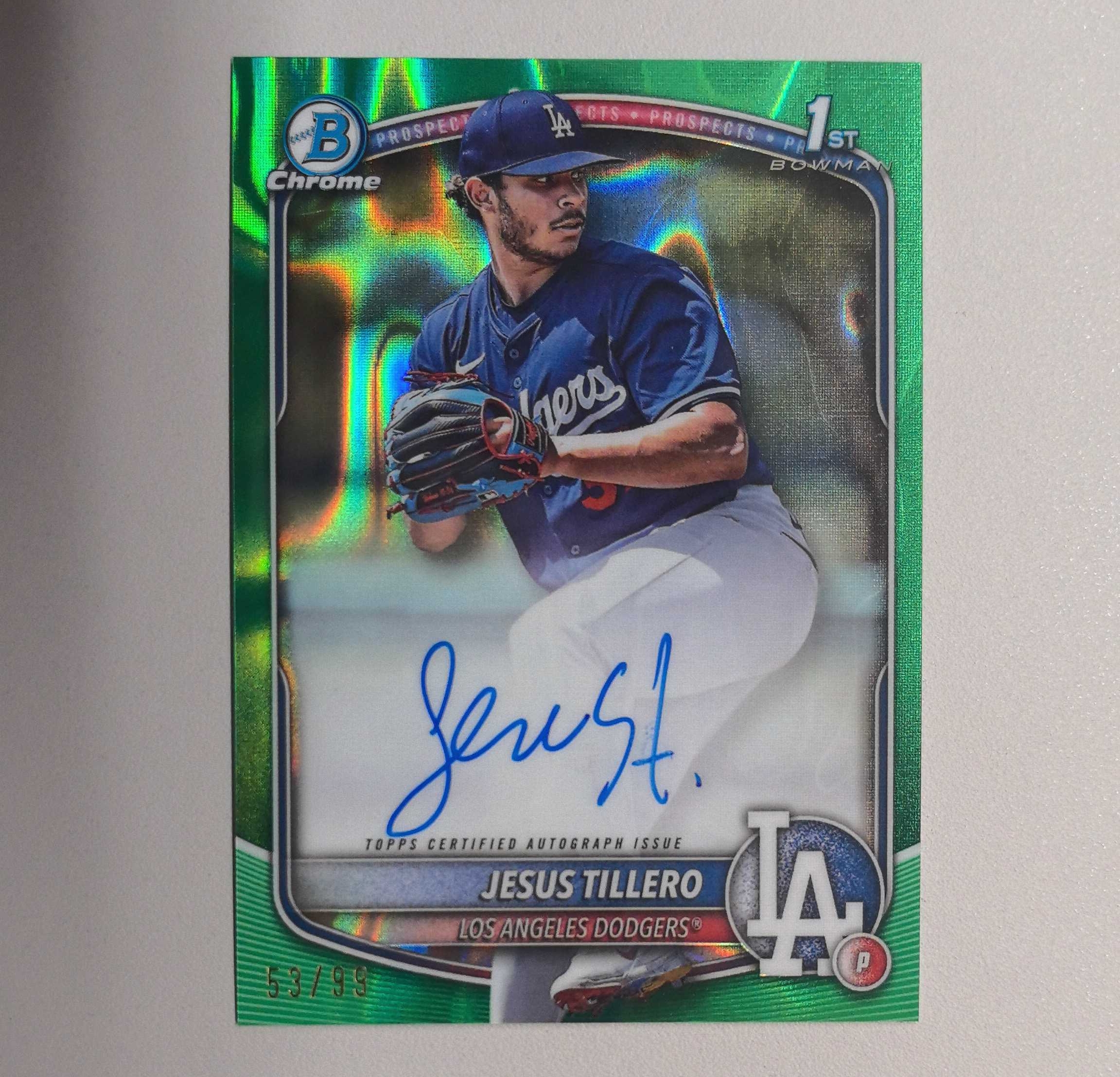 2025 Topps 【锡安代卖】 累计照常 棒球mlb bowman 1st新秀签字卡签 99编绿熔岩折 洛杉矶道奇热门新秀大物 Jesus Tillero 卡品如图 卖卡锡