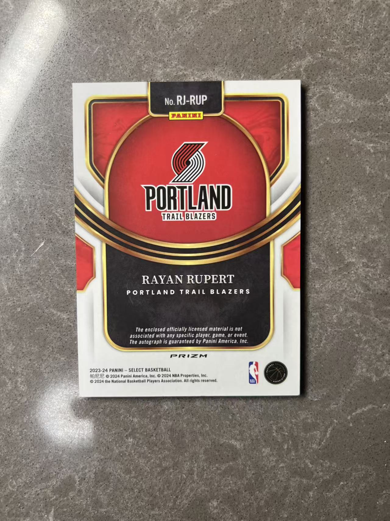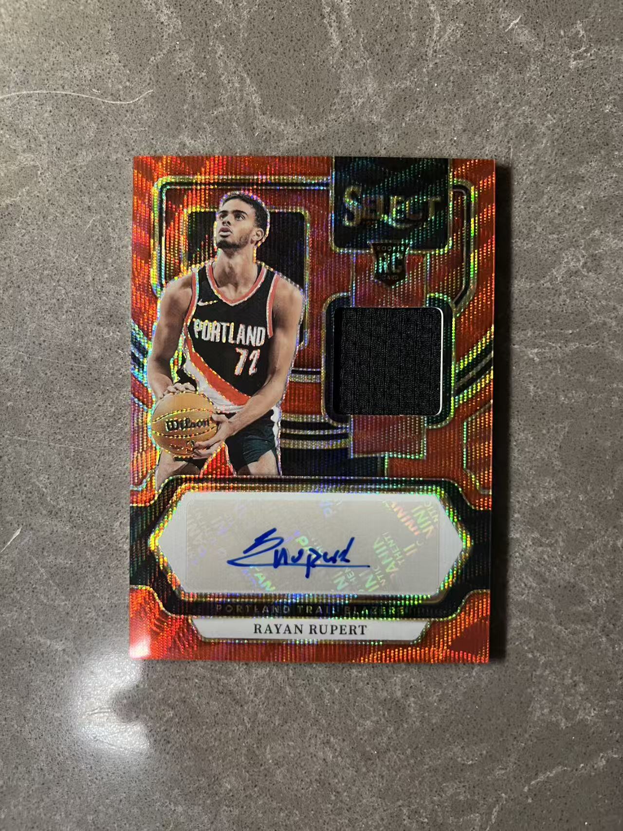 2023-24 Panini Select Rayan Rupert RC 【qchhh】拉扬 吕佩尔 开拓者 新秀 RJA 签字 物料 红波纹折 通行卡品
