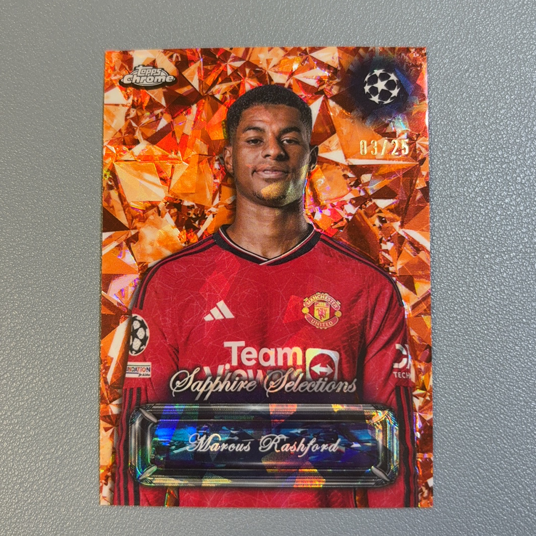 【风速狗】2023-24 Topps Sapphire Chrome 欧冠 蓝宝石 Marcus Rashford 曼联 拉什福德 3/25编 精选 橙碎冰 路