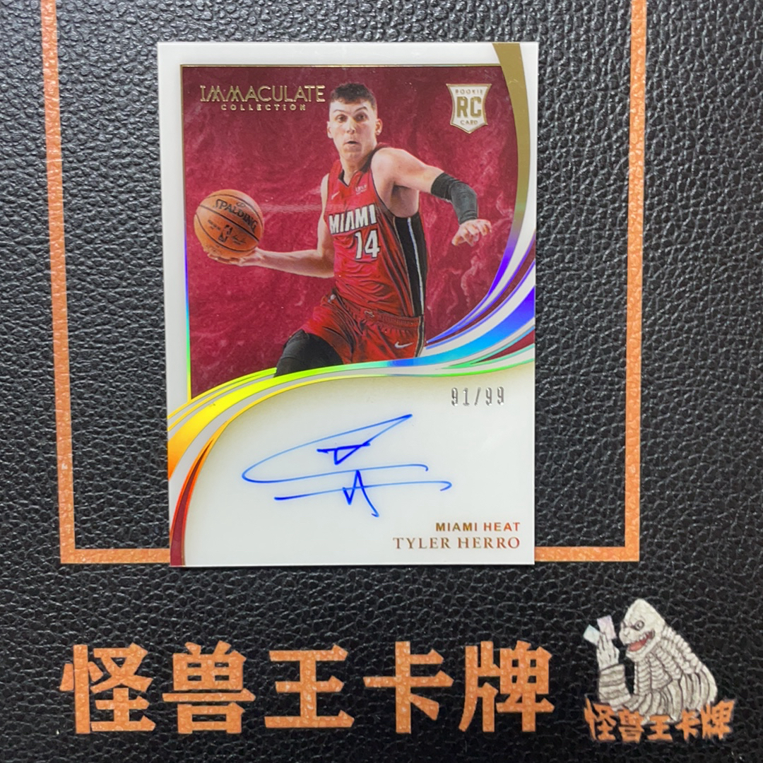 (怪兽拍卖) GSW-F75 2019-20 Panini Immaculate Tyler Herro RC 爱咪咪 热火 新秀 泰勒 希罗 签字 卡签 镜面 91/99编 微瑕如图3