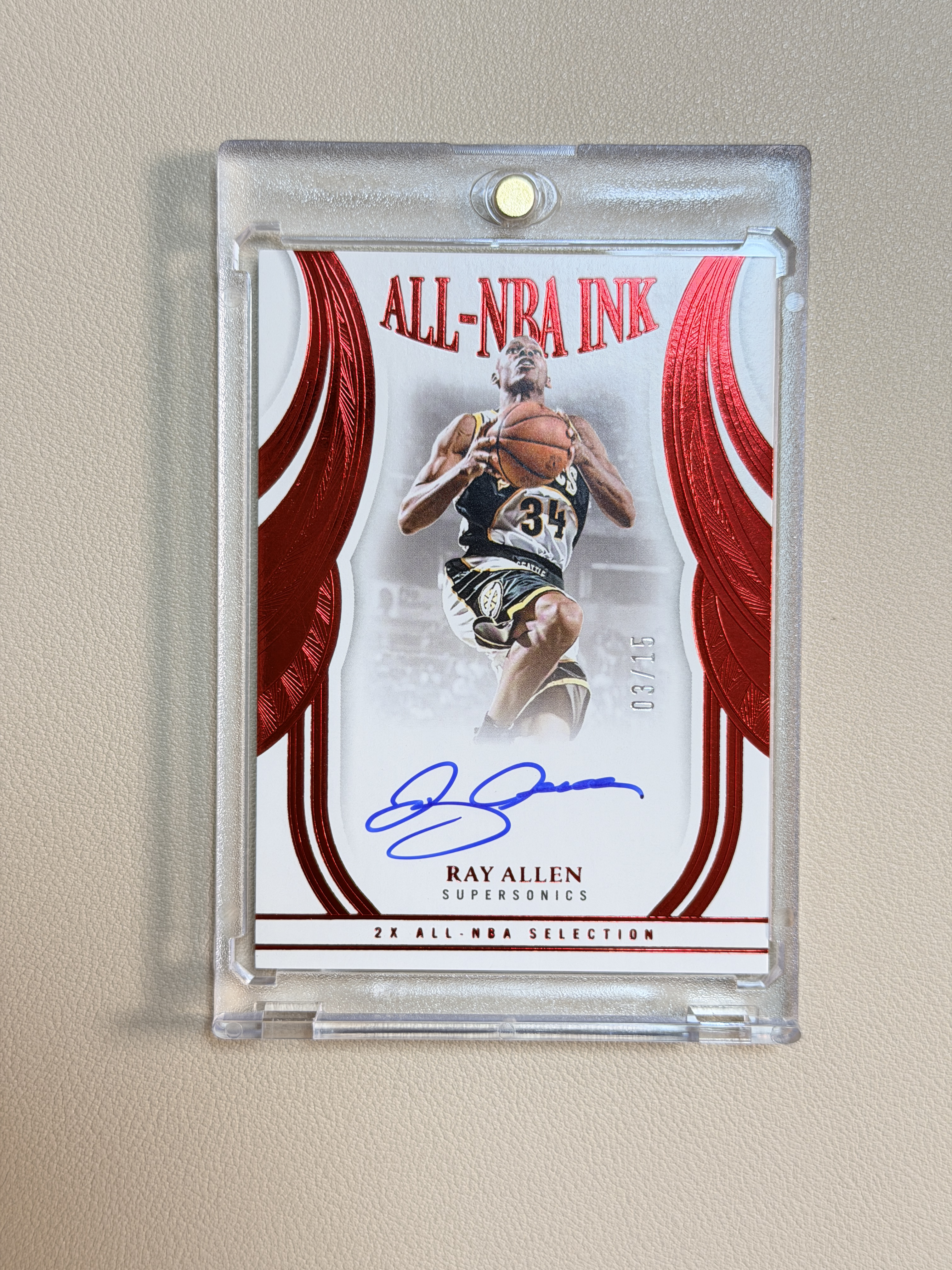 2024-25 Panini Flawless Ray Allen 手提 雷阿伦 君子雷 三分机器 雄鹿 03/15编 红平行 卡签 签字 ALL NBA INK签 卡品如图