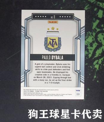 【狗王球星卡代卖规则】:1、关于卡片:所有卡片均为卡主委托本店代卖,所有图片均为实拍图。2、关于卡品:印刷线、胶印;厚卡白边、白角、毛边;薄卡印刷油口、小程度弯曲等均属出品厂商问题,非人为因素造成,可站内客服获取高清图及视频;默认打包lot卡片不保障卡品。出价即视为接受卡品。重大瑕疵会标注细节,原则上不退货(产生争议可走卡淘流程),如有卡品要求请购买评级卡!3、关于卡具:所有卡片均含卡膜,单价超过100元的卡片会配备卡具,如需购买卡具请站内留言4、关于支付:均为线上支付,请中标卡友于3日内支付,超期本店有权向卡淘发起投诉。5、关于邮寄:所有卡片在付款后3个工作日内均按默认地址发出(如需变更地址,请自行在付款界面变更收货地址),本店默认使用顺丰快递,邮费:湖南省内12;其他省份18,偏远地区一律到付(如需保价请联系客服)(默认首重2KG,LOT超重另计)。6、本店不提供交换板代刮业务,请见谅!