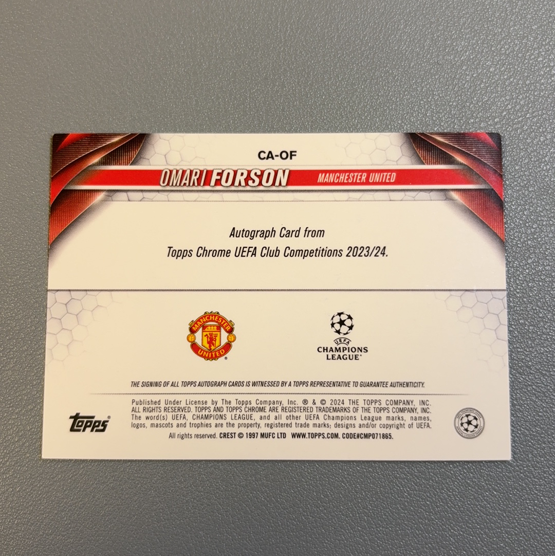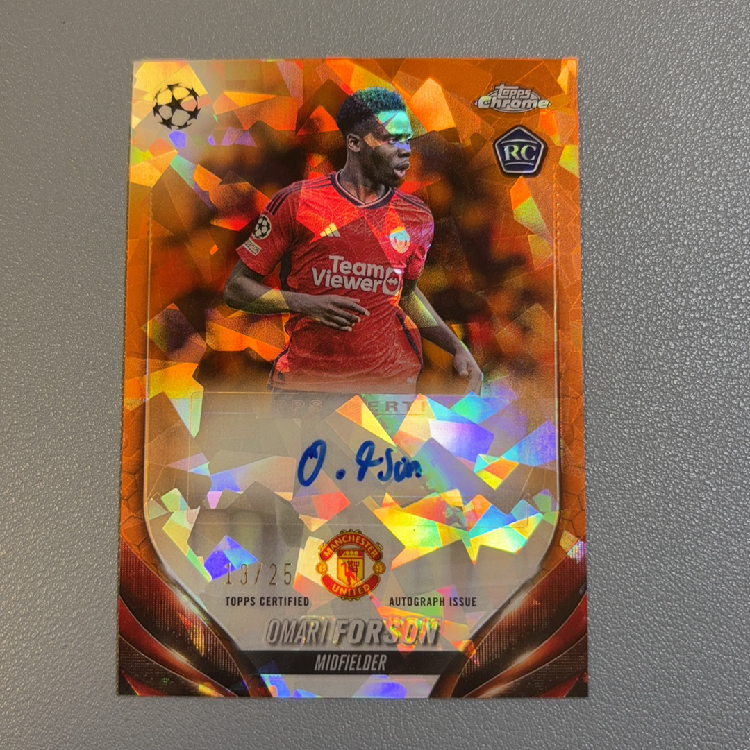 【风速狗】2023-24 Topps Sapphire Chrome 欧冠 蓝宝石 Omari Forson RC 欧战 曼联 新秀RC 奥马里 福尔森 13/25编 签字 签名 橙碎冰 路