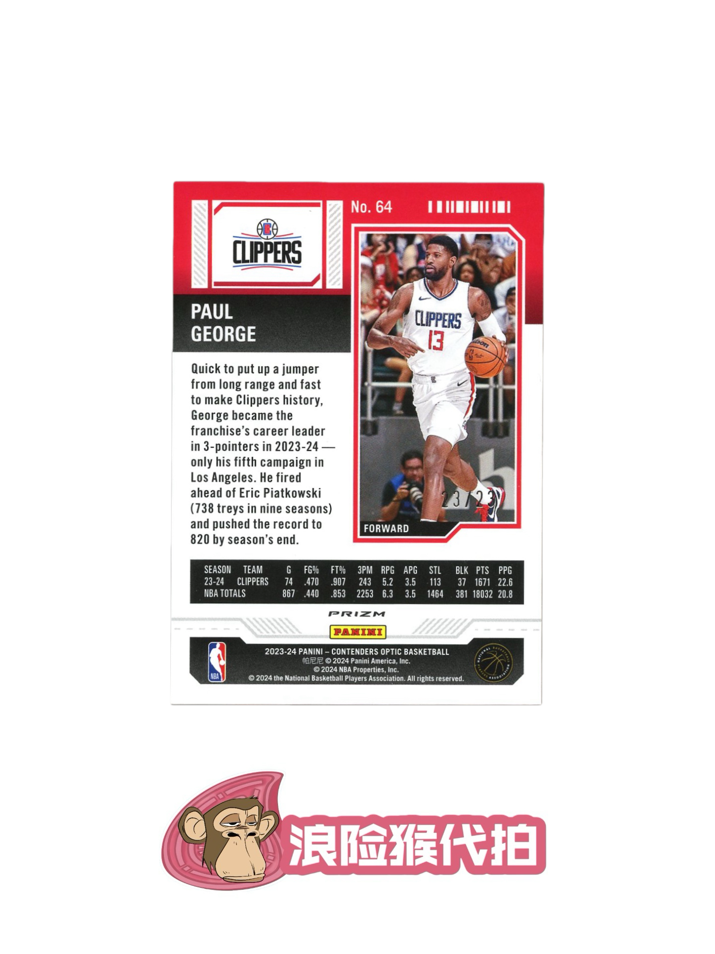 【浪险猴🐒代拍】2023-24 Panini Contenders Optic Paul George 球票OP 快船 保罗 乔治 23/23尾编!!银碎冰折 折射 赛季 球票 卡品如图 黎明