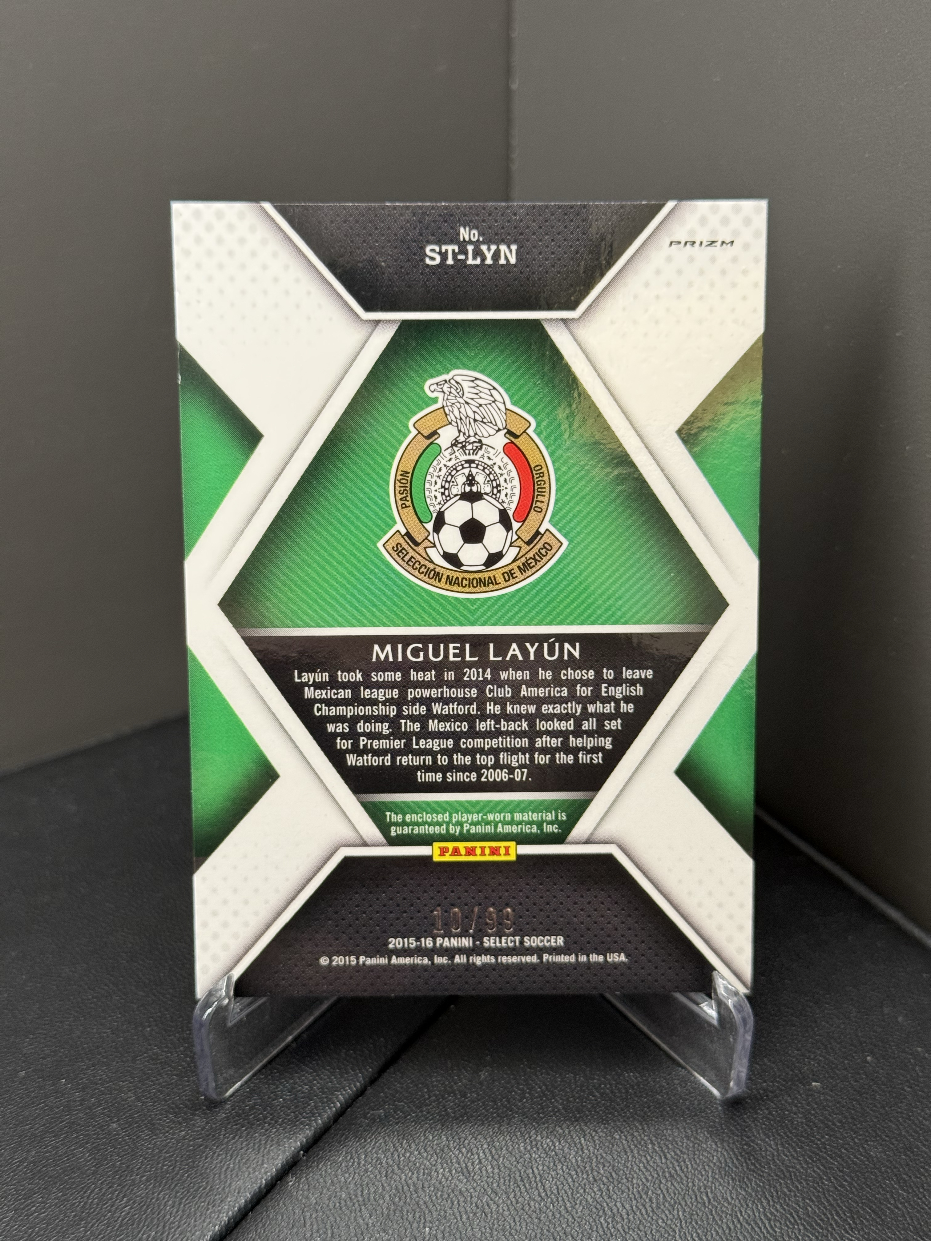 2015-16 Panini Select Miguel Layun 元年 墨西哥 拉云 亲穿球衣 落场物料 双色 横球衣 99编 专收必备 瑕疵如图 签字 收藏必备 代拍私信