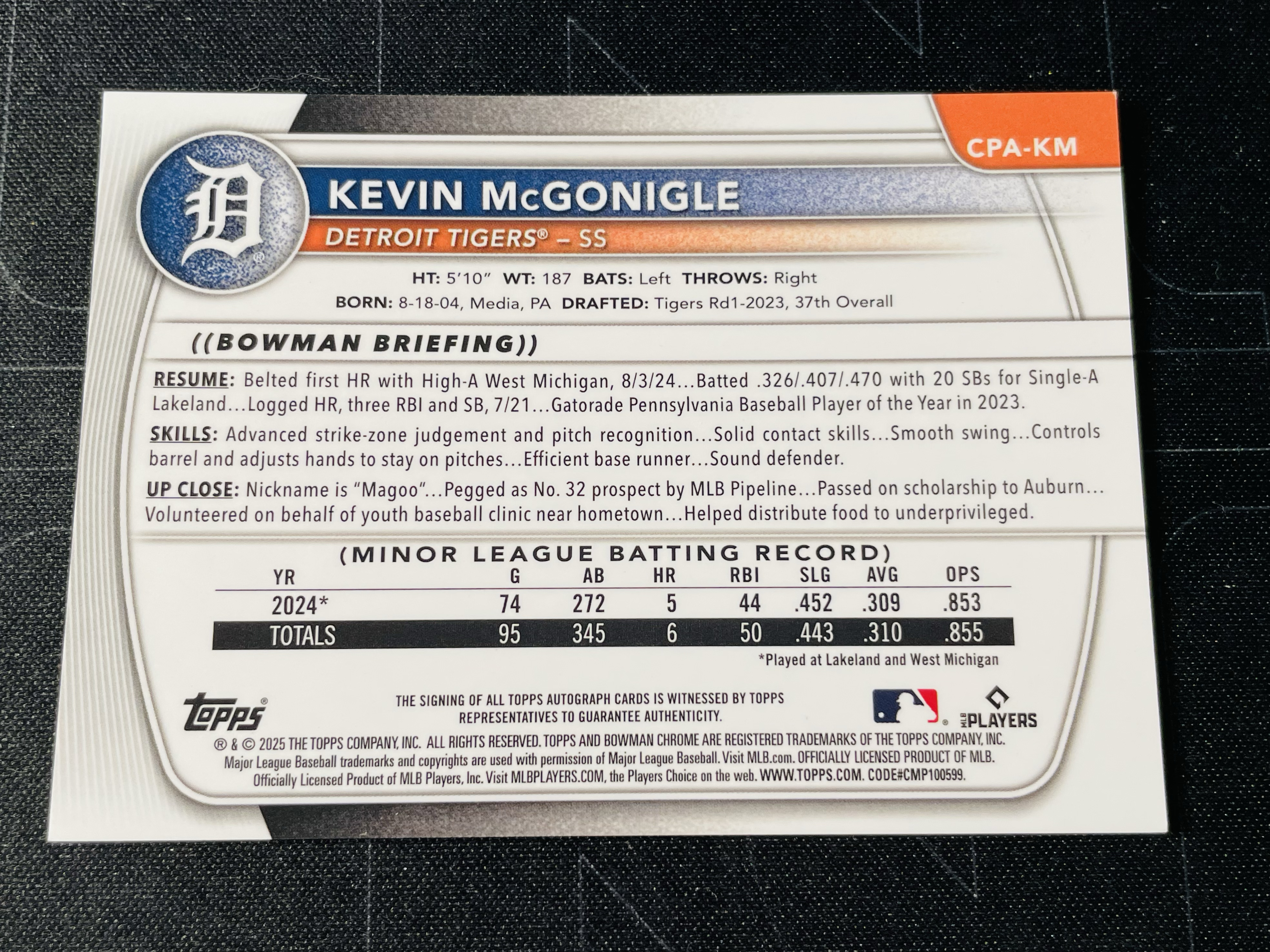 2024 Topps bowman chrome Kevin McGONIGLE RC 【MJ23棒球】MLB 1st新秀 底特律老虎超级新秀大物 凯文 麦格尼格250编卡签签字 紫折射卡品如图 好嗨