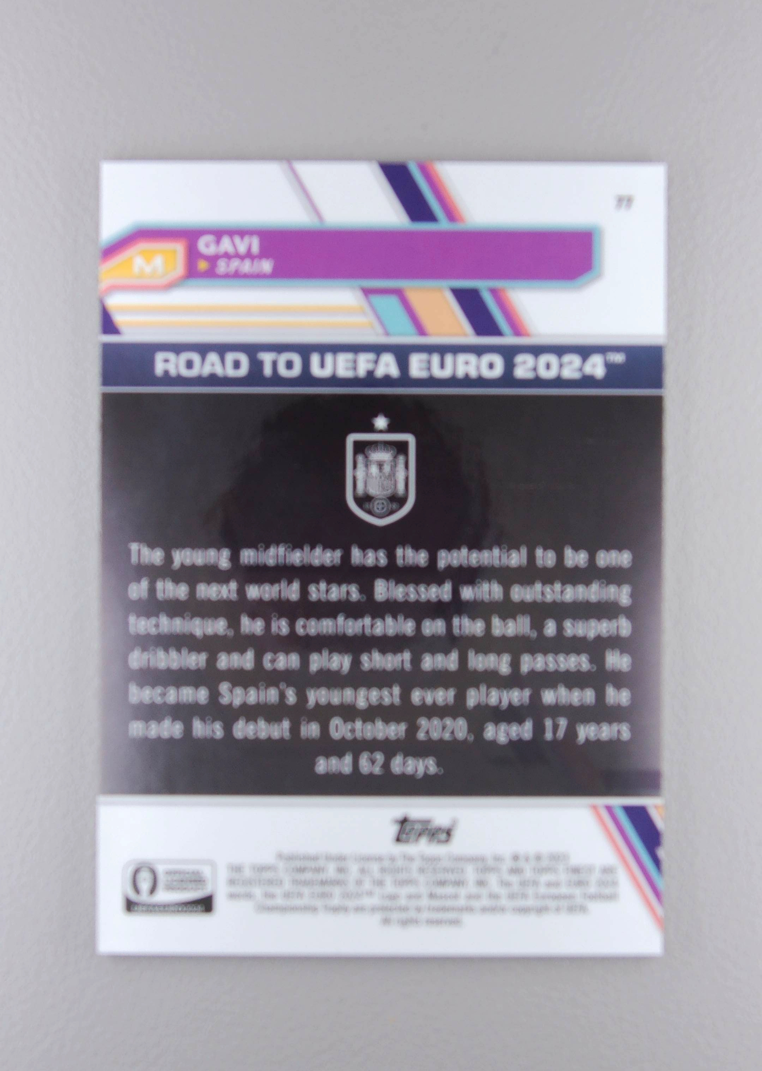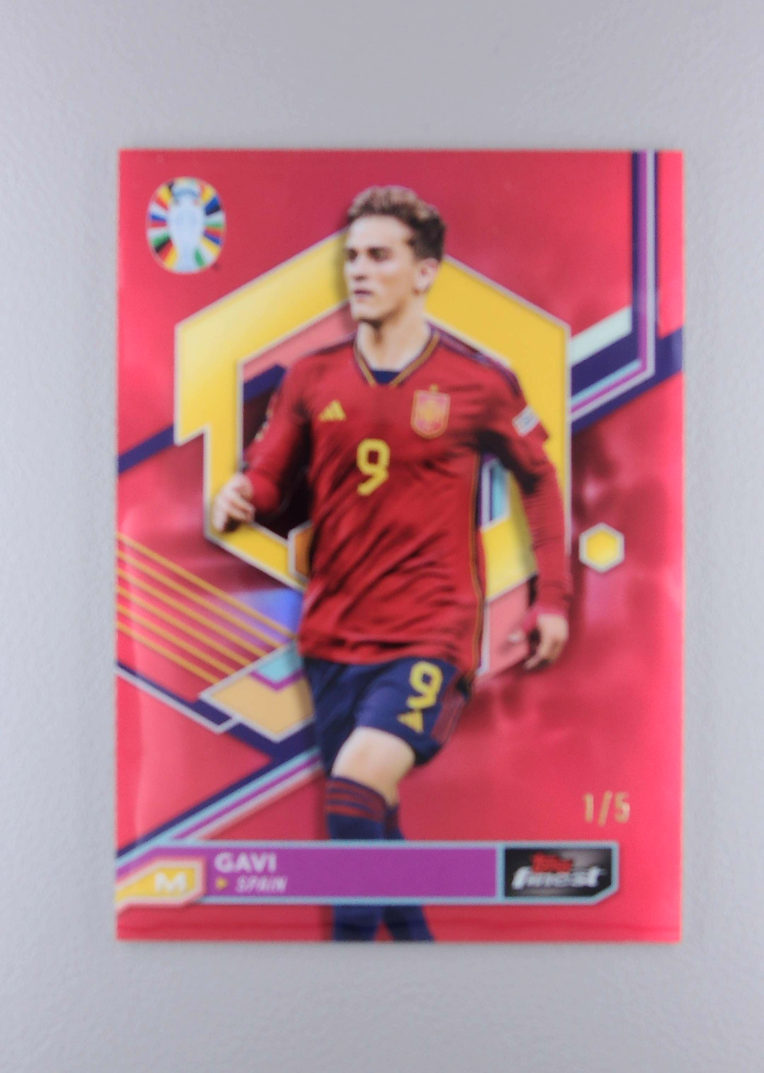 2023 Topps Finest Gavi 加维 西班牙 巴萨 巴塞罗那 1/5编 首编 金童科帕奖 划痕 折射 欧洲杯冠军 红折 color match 队服同色 战神无双拍卡 (花海)