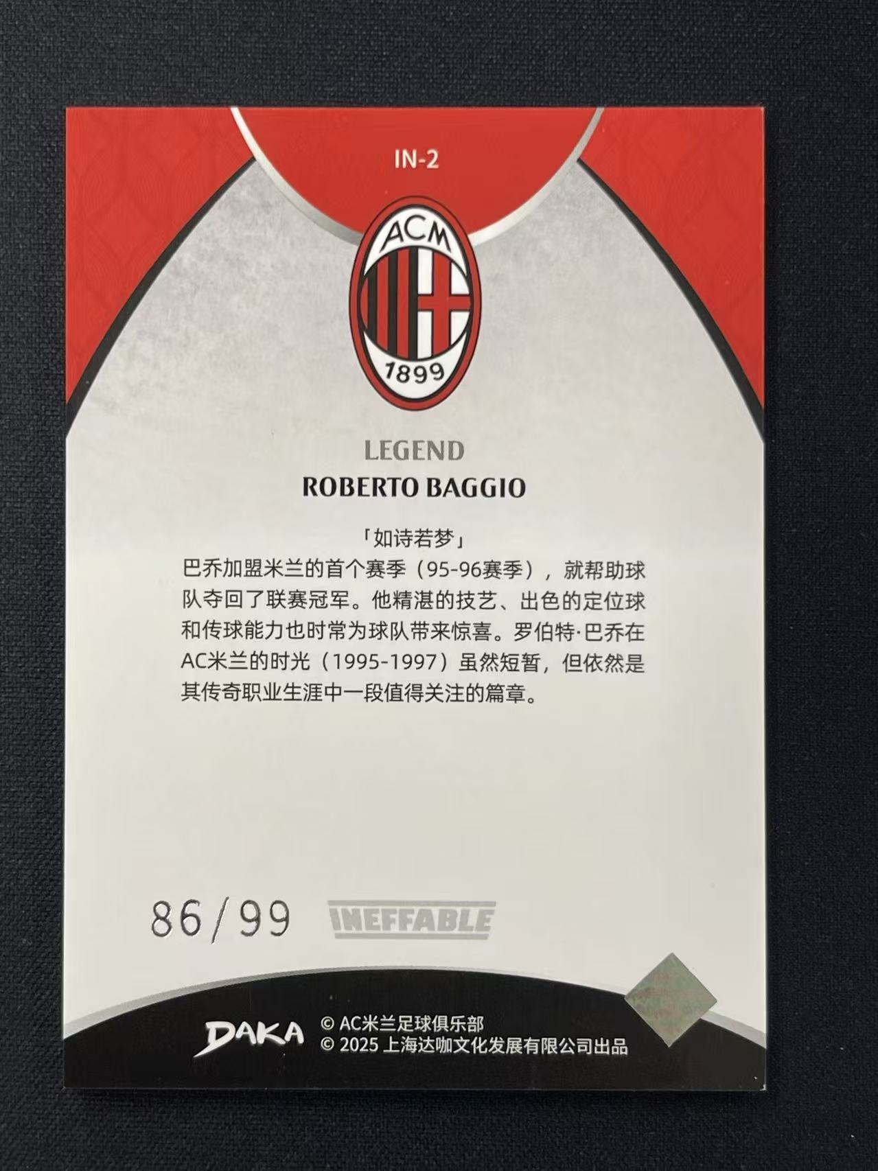 2024-25 DAKA AC米兰 MilanOne&Two队盒 Roberto Baggio CGC9.5分 巴乔 意大利王子 INEFFABLE 厚卡Base 86/99编 银平行 贝勒21