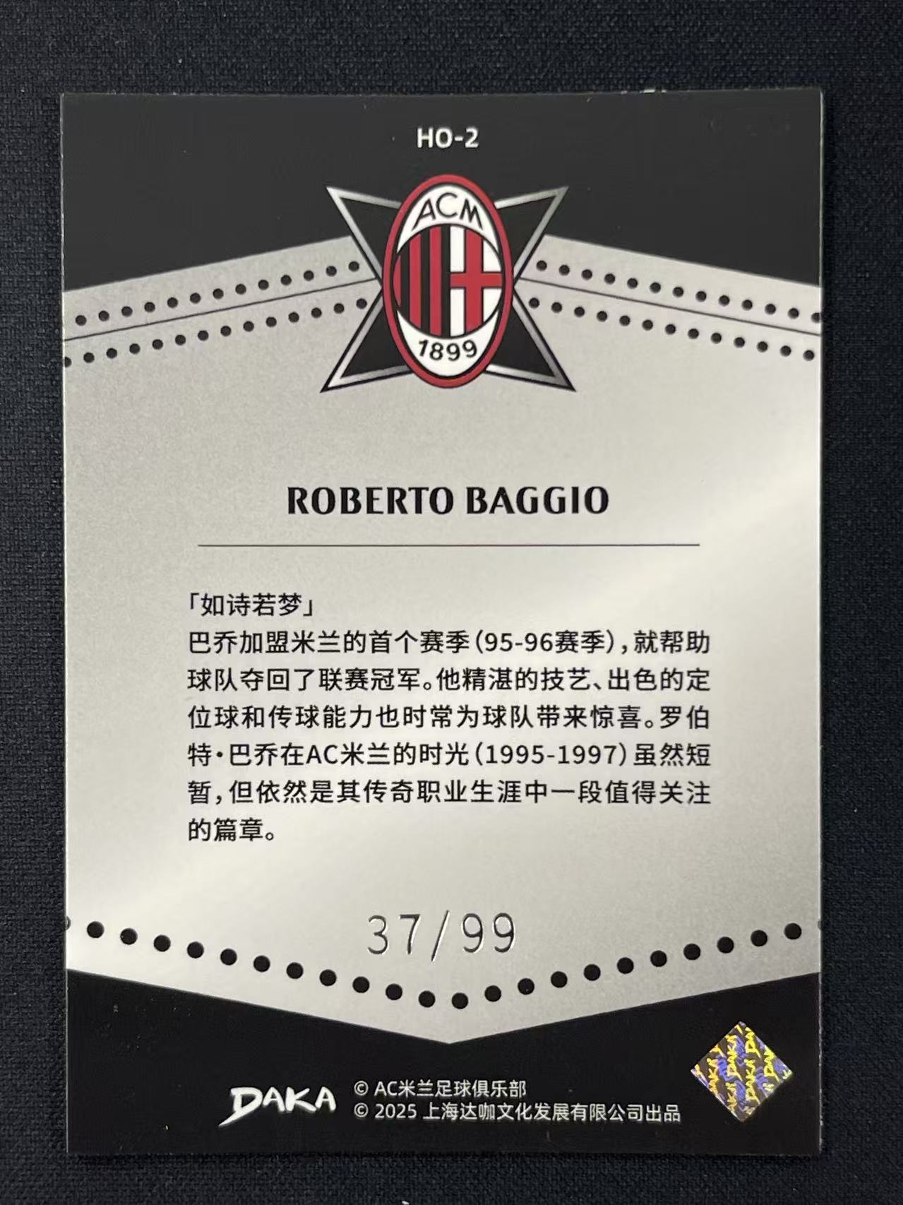 2024-25 DAKA AC米兰 MilanOne&Two队盒 Roberto Baggio 巴乔 意大利王子 HOLOCENE Base 37/99编 紫平行  贝勒21