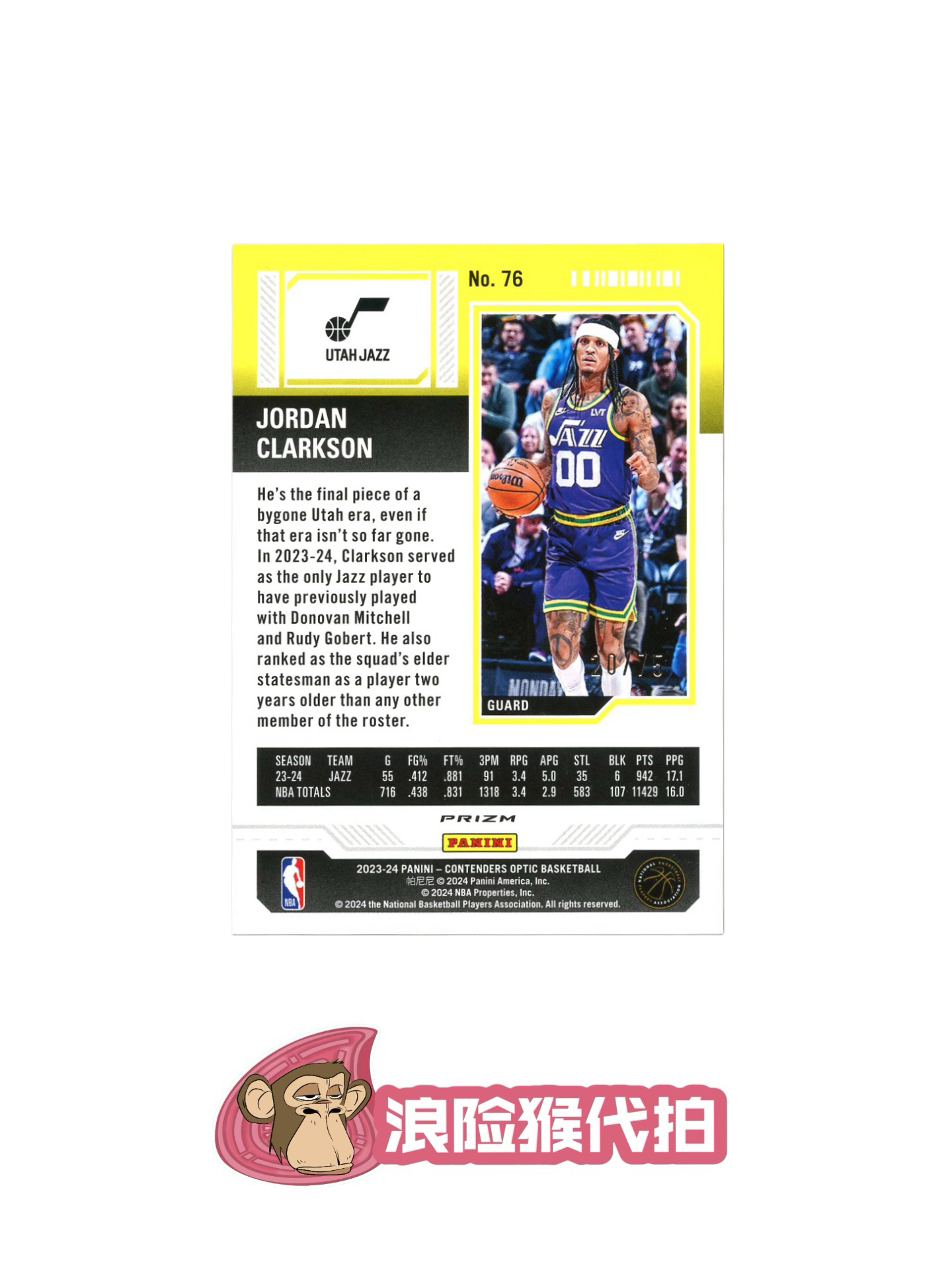 【浪险猴🐒代拍】2023-24 Contenders Jordan Clarkson 球票 爵士 乔丹 克拉克森 20/75编 折射 粉折 值得收藏 卡品如图 黎明