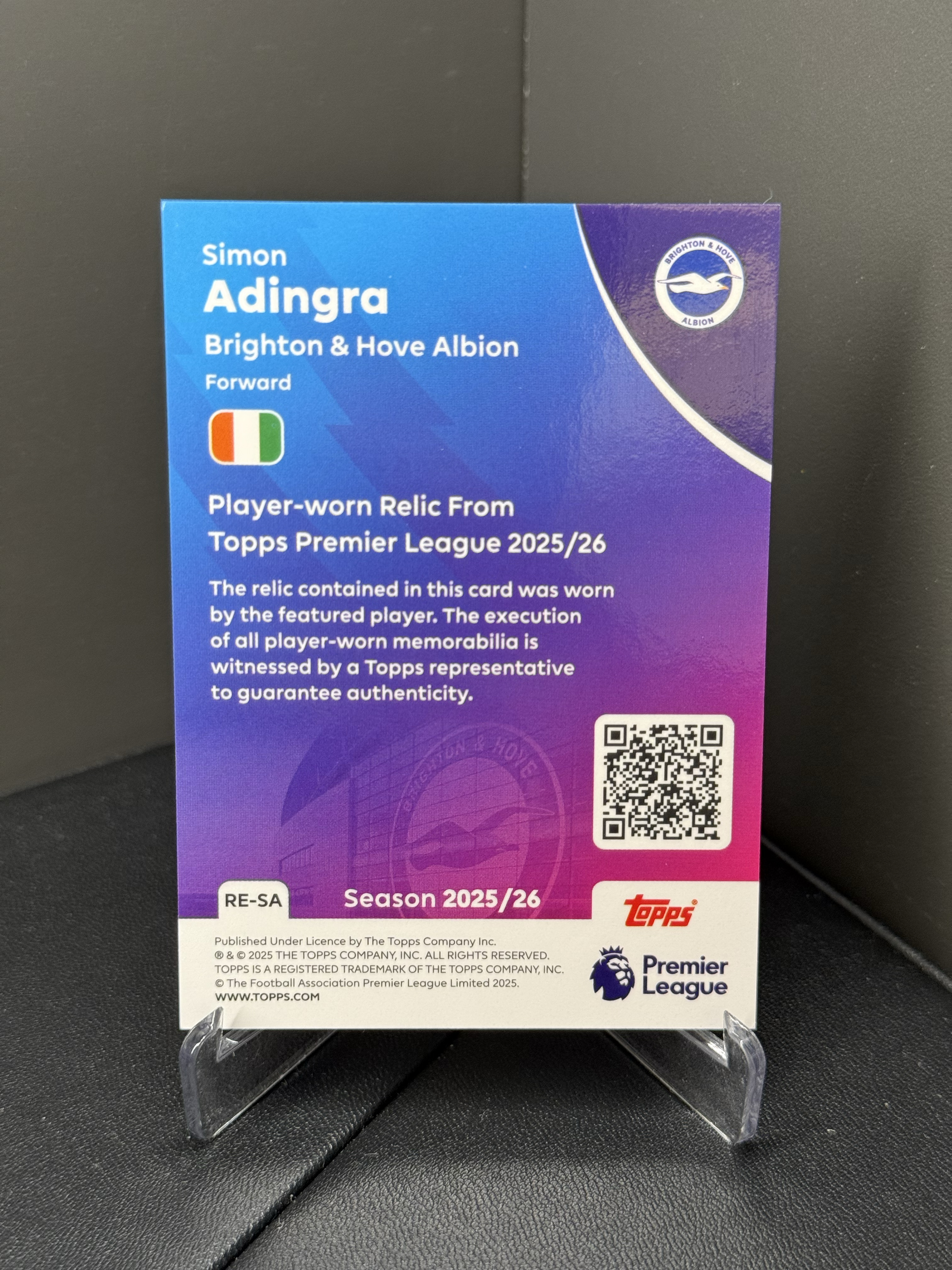 2025-26 Topps Premier League Simon Adingra 西蒙 阿丁格拉 布莱顿 科特迪瓦 英超 球衣 物料 瑕疵如图 签字 收藏必备 代拍私信