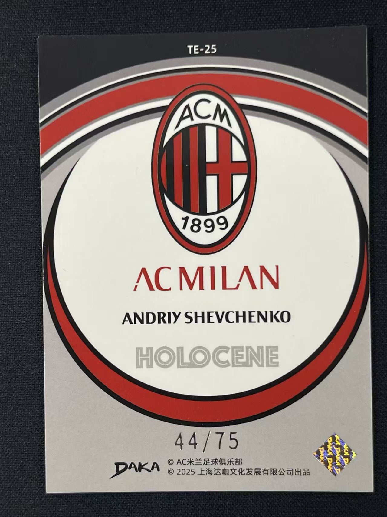 2024-25 DAKA AC米兰 MilanOne&Two队盒 Andriy Shevchenko 舍甫琴科 核弹头 红黑涡轮 TURBINE 特卡 44/75编 银平行 TE-25 贝勒21