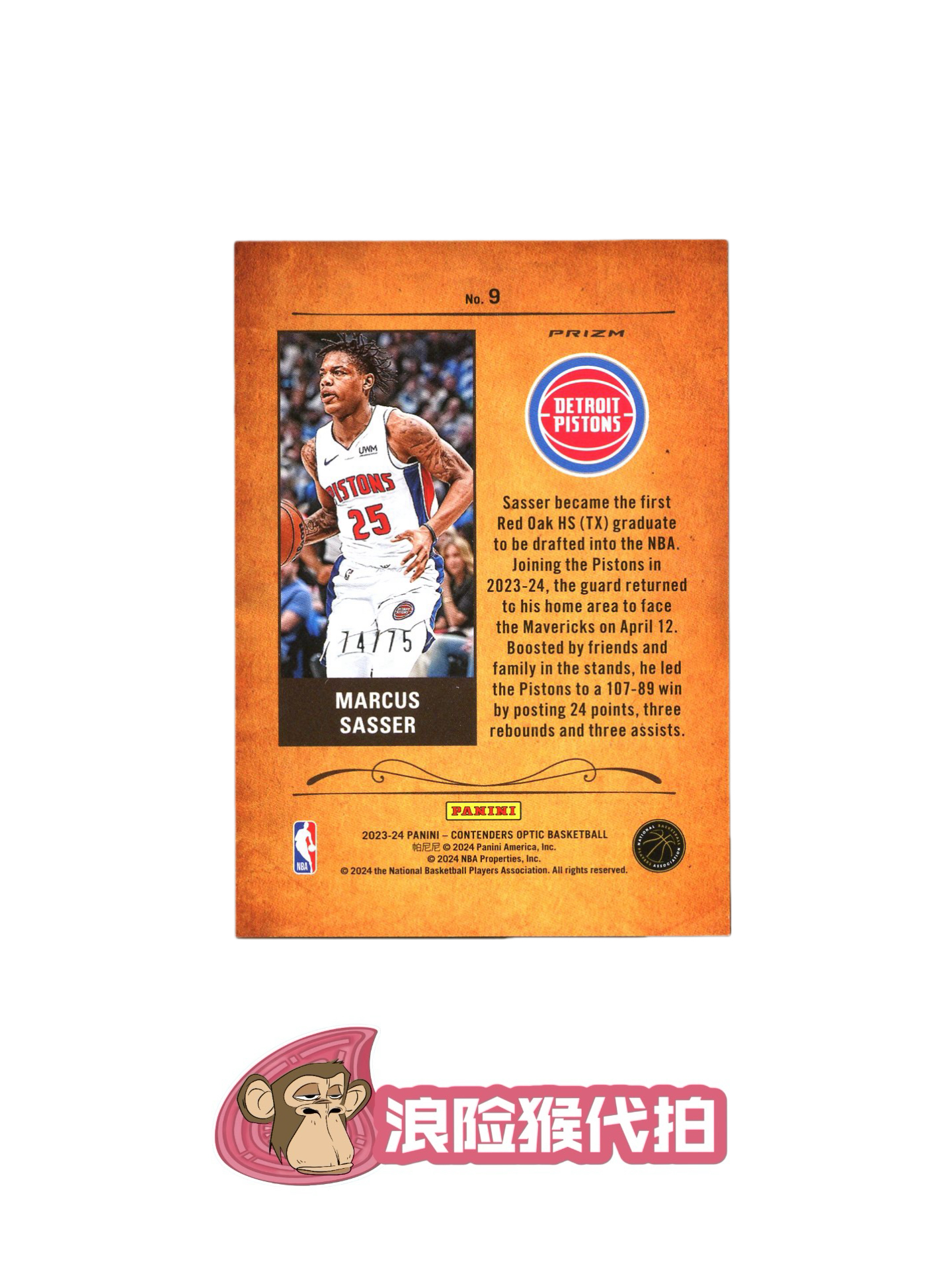【浪险猴🐒代拍】2023-24 Panini Contenders Optic Marcus Sasser RC 活塞 马库斯 萨瑟 新秀 ROUNDUP特卡 75编 蓝碎冰折 卡品如图 黎明